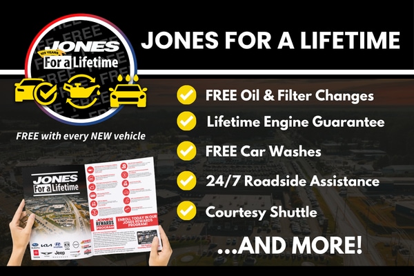 Exclusive lifetime benefits. Enjoy complimentary engine guarantee, car washes, and more - only at Jones Junction.