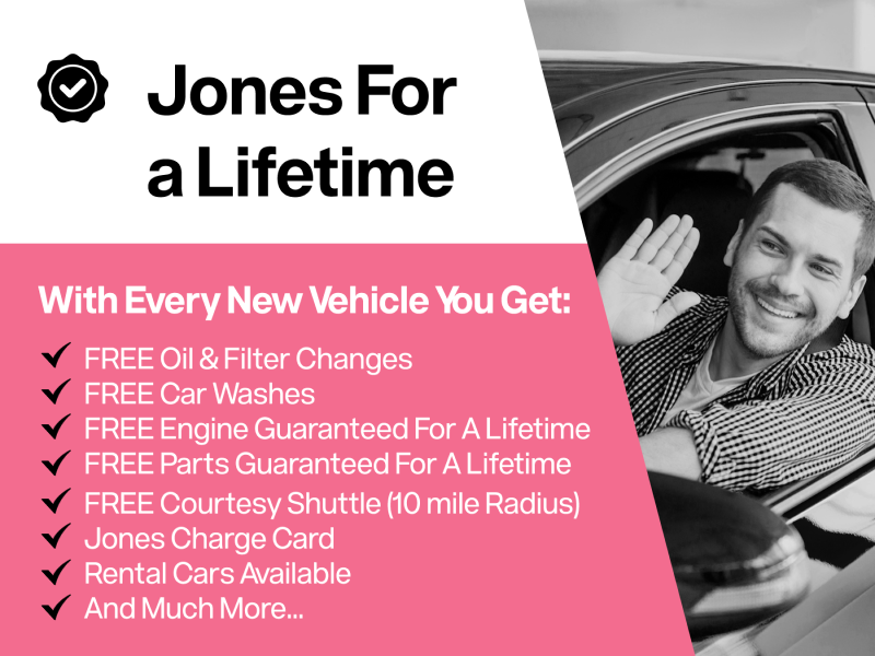 Exclusive lifetime benefits. Enjoy complimentary engine warranty, car washes, and more - only at Jones Junction.