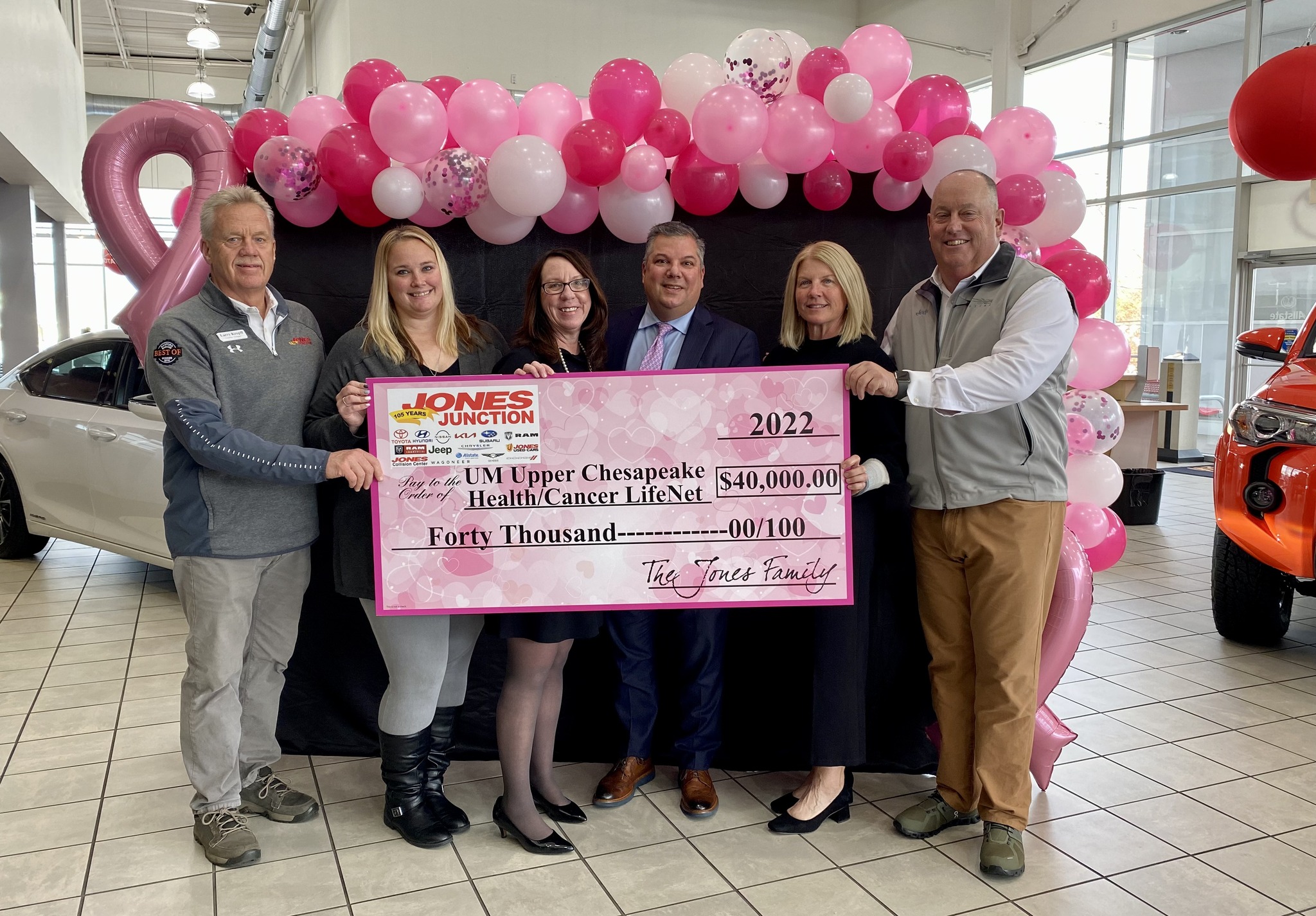 During Breast Cancer Awareness Month, a portion of every sale went towards supporting cancer care through the Upper Chesapeake Health Foundation.  In addition, the Jones staff participated as well.  This totaled a $40,000 donation which will support those going through treatment.
