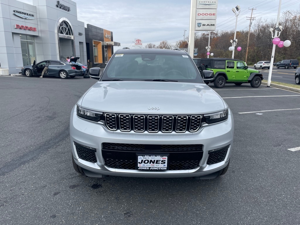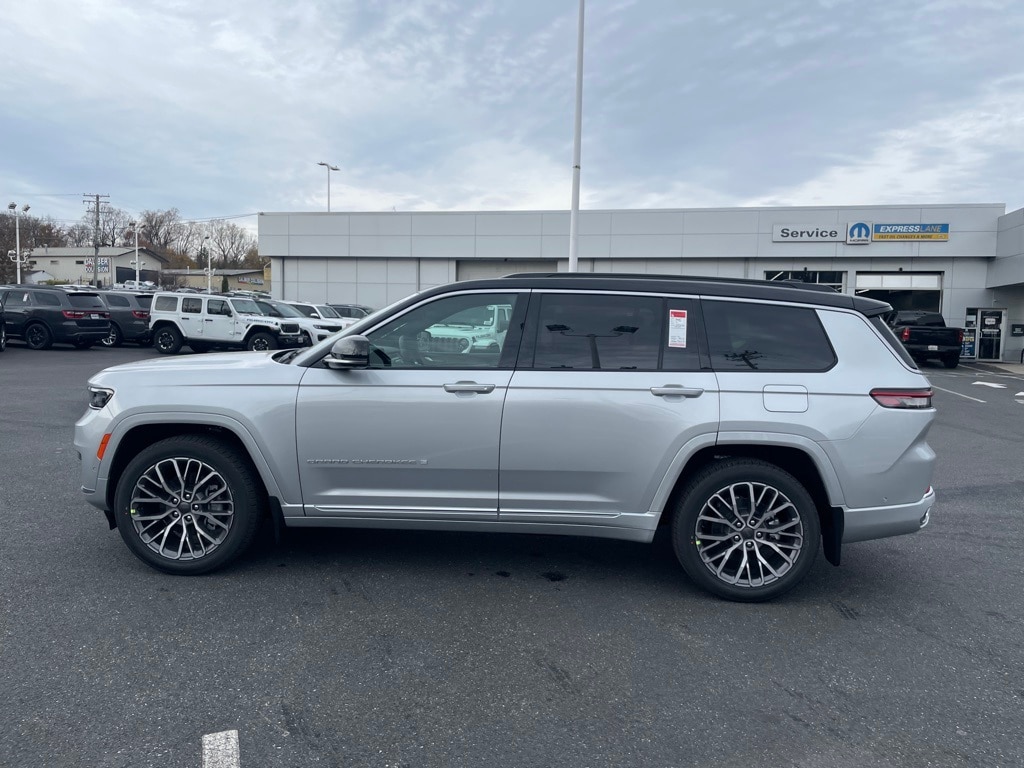 Luxury Tech Group V (2nd Row Manual Window Shades and Wireless Charging Pad), MOPAR Finishing Package (MOPAR Front Splash Guards, MOPAR Paint Protection Film, and MOPAR Rear Splash Guards with Jeep Logo), Quick Order Package 23U Summit Reserve (19 Speakers High Performance Audio, 950 Watt Amplifier, Active Noise Control System, Deluxe Headliner, Front Passenger Interactive Display, Palermo Leather Door Trim, Palermo Leather Seats, Summit, Summit Badge, Ventilated Rear Seats, and Wheels: 21" x 9.0" Machined Face/Painted Aluminum), 10 Speakers, 2nd Row 60/40 Bench with Manual Tip/Slide, 2nd Row Seat Center Armrest/Cupholders, 3 Rear Seat Head Restraints, 3.45 Rear Axle Ratio, 3rd row seats: split-bench, 4-Wheel Disc Brakes, 7-Passenger Seating, ABS brakes, Adaptive suspension, Air Conditioning, Alloy wheels, AM/FM radio: SiriusXM with 360L, Anti-whiplash front head restraints, Audio memory, Auto High-beam Headlights, Auto-dimming door mirrors, Auto-dimming Rear-View mirror, Auto-leveling suspension, Automatic temperature control, Brake assist, Bumpers: body-color, Center Rear 3-Point Seat Belt, Compass, Delay-off headlights, Driver door bin, Driver vanity mirror, Dual front impact airbags, Dual front side impact airbags, Electronic Stability Control, Emergency communication system, Four wheel independent suspension, Front anti-roll bar, Front Bucket Seats, Front Center Armrest w/Storage, Front dual zone A/C, Front fog lights, Front License Plate Bracket, Front reading lights, Fully automatic headlights, Garage door transmitter, Genuine wood dashboard insert, Genuine wood door panel insert, Heated door mirrors, Heated front seats, Heated rear seats, Heated steering wheel, Illuminated entry, Knee airbag, Leather steering wheel, Low tire pressure warning, Memory seat, Model Year Tracking, Nappa Leather Seats, Navigation System, Normal Duty Suspension, Occupant sensing airbag, Outside temperature display, Overhead airbag, Overhead console, Panic alarm, Passenger door bin, Passenger vanity mirror, Power door mirrors, Power driver seat, Power Fold Seatbacks, Power Liftgate, Power moonroof, Power passenger seat, Power steering, Power windows, Radio data system, Radio: Uconnect 5 Nav with 10.1" Display, Rain sensing wipers, Rear air conditioning, Rear anti-roll bar, Rear dual zone A/C, Rear reading lights, Rear seat center armrest, Rear window defroster, Rear window wiper, Reclining 3rd row seat, Remote keyless entry, Security system, Speed control, Speed-Sensitive Wipers, Split folding rear seat, Spoiler, Steering wheel memory, Steering wheel mounted audio controls, Tachometer, Telescoping steering wheel, Tilt steering wheel, Traction control, Trip computer, Turn signal indicator mirrors, Variably intermittent wipers, Ventilated front seats, Voltmeter, and Wheels: 20" x 8.5" Fully Painted Aluminum Silver.