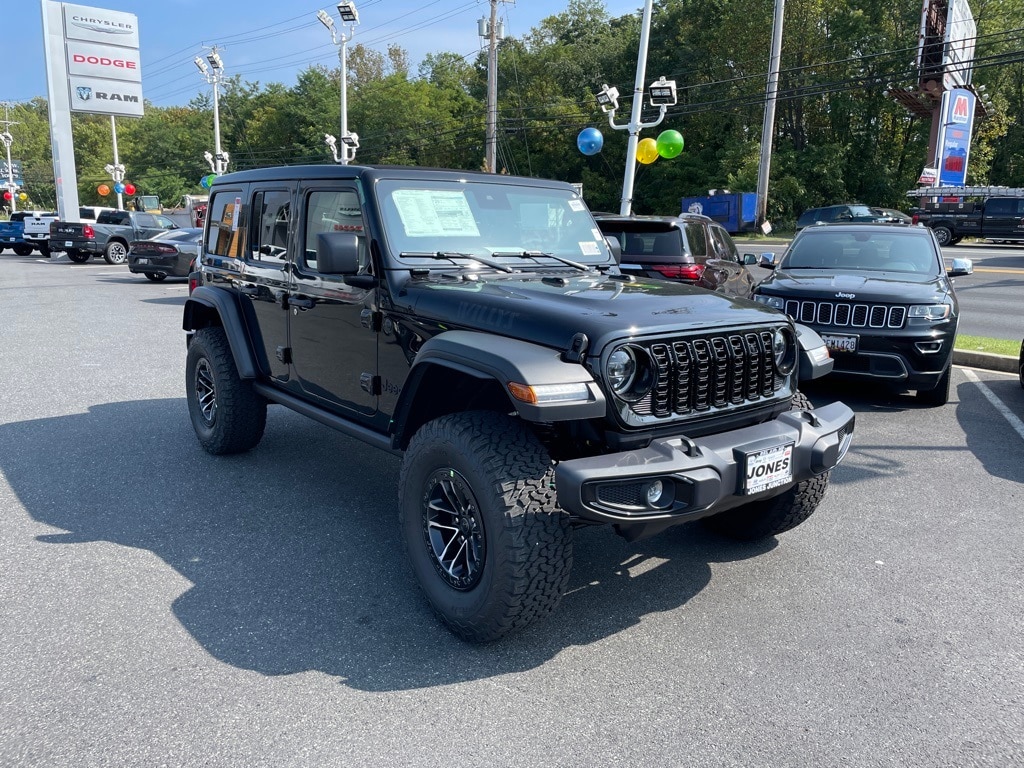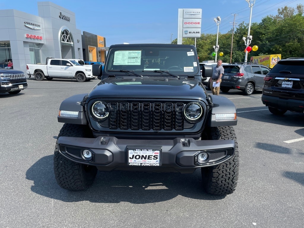 Convenience Group (2-Door Passive Entry, Front Door Locks, Air Conditioning w/Auto Temperature Control, Air Filtering, Cluster 7.0" TFT Color Display, Emergency/Assistance Call, Heated Front Seats, Heated Steering Wheel, Remote Start System, and Universal Garage Door Opener), Quick Order Package 24W Willys (4-Wheel Drive Swing Gate Decal, 7 & 4 Pin Wiring Harness, 97 MPH Vehicle Max Speed Calibration, Advanced Brake Assist, Automatic Headlamps, Auxiliary Switches, Black Grille, Class II Receiver Hitch, Conventional Differential Front Axle, Corning Gorilla Glass, Dana M210 Wide HD Tube Front Axle, Dana M220 Wide Rear Axle, Daytime Running Lamps LED Accents, Deep Tint Sunscreen Windows, E-Locker Rear Axle, Enhanced Adaptive Cruise Control, Front LED Fog Lamps, Full Speed Forward Collision Warning Plus, Injection Molded Black Rear Bumper, LED Premium Reflector Headlamps, Mold In Color Bumper w/Gloss Black, Molded in Color Rubicon Highline Flare, MOPAR All-Weather Floor Mats, Off-Road Plus Mode, Power Heated Mirrors, Premium Wrapped Steering Wheel, Security Alarm, Sun Visors w/Illuminated Vanity Mirrors, Wheels: 17" x 7.5" Painted Black, Willy's Suspension, and Willys Hood Decal), Xtreme 35" Tire Package (35" Tire Suspension, Anti-Lock 4-Wheel Disc Perf Brakes, MOPAR Hinge-Gate Reinforcement, Wheel Flare Extensions, and Wheels: 17" x 8" Machined w/Black Pockets), 110 MPH Vehicle Max Speed Calibration, 4-Wheel Disc Brakes, 8 Speakers, ABS brakes, Air Conditioning, AM/FM radio: SiriusXM, Apple CarPlay/Android Auto, Aux Battery, Brake assist, Cloth Low-Back Bucket Seats, Compass, Delay-off headlights, Driver door bin, Driver vanity mirror, Dual front impact airbags, Dual front side impact airbags, Electronic Stability Control, Front anti-roll bar, Front Bucket Seats, Front Center Armrest w/Storage, Front fog lights, Front reading lights, Illuminated entry, Integrated roll-over protection, Jeep Trail Rated Kit, Low tire pressure warning, Non-Lock Fuel Cap w/o Discriminator, Normal Duty Suspension, Occupant sensing airbag, Outside temperature display, Overhead airbag, Panic alarm, ParkView Rear Back-Up Camera, Passenger door bin, Passenger vanity mirror, Power steering, Power Top Quarter Window Storage Bag, Power windows, Radio data system, Radio: Uconnect 5 w/12.3" Display, Rear anti-roll bar, Rear reading lights, Rear Window Defroster, Rear Window Wiper/Washer, Remote keyless entry, Removable Rear Quarter Windows, Sky 1-Touch Power Top, Speed control, Split folding rear seat, Steering wheel mounted audio controls, Stop-Start Dual Battery System, Tachometer, Telescoping steering wheel, Tilt steering wheel, Traction control, Trip computer, Variably intermittent wipers, and Wheels: 17" x 7.5" Black Steel Styled.