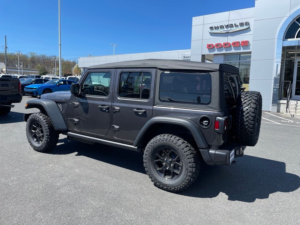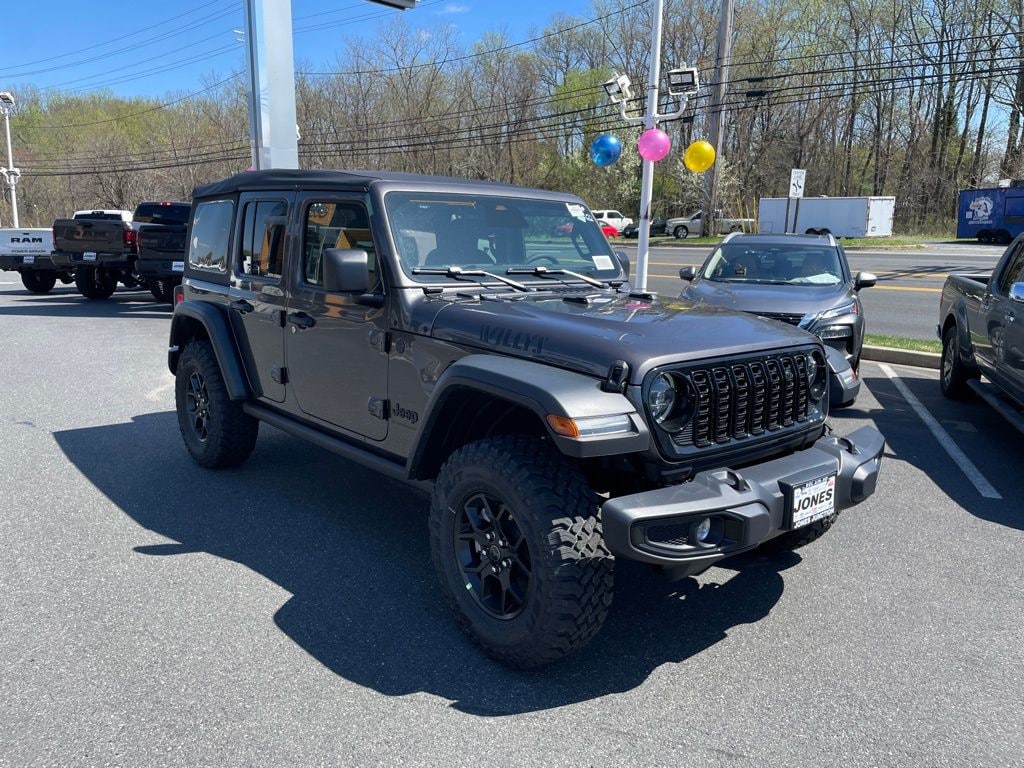 Convenience Group (2-Door Passive Entry, Front Door Locks, Air Conditioning with Auto Temp Control, Air Filtering, Cluster 7.0" TFT Color Display, Emergency/Assistance Call, Heated Front Seats, Heated Steering Wheel, and Universal Garage Door Opener), Quick Order Package 23W Willys (4-Wheel Drive Swing Gate Decal, 7 and 4 Pin Wiring Harness, Advanced Brake Assist, Automatic Headlamps, Auxiliary Switches, Black Grille with Gloss Black Rings, Class II Receiver Hitch, Conventional Differential Front Axle, Corning Gorilla Glass, Dana M210 Wide HD Tube Front Axle, Dana M220 Wide Rear Axle, Daytime Running Lamps LED Accents, Deep Tint Sunscreen Windows, E-Locker Rear Axle, Enhanced Adaptive Cruise Control, Front LED Fog Lamps, Full Speed Forward Collision Warning Plus, Increased Travel Export Tuned Suspension, Injection Molded Black Rear Bumper, LED Premium Reflector Headlamps, Mold in Color Bumper with Gloss Black, Molded in Color Rubicon Highline Flare, MOPAR All-Weather Floor Mats, Off-Road Plus Mode, Power Heated Mirrors, Premium Wrapped Steering Wheel, Security Alarm, Sun Visors with Illuminated Vanity Mirrors, Wheels: 17" x 7.5" Painted Black, and Willys Hood Decal), 12.3" Touchscreen Display, 4-Wheel Disc Brakes, 4G LTE Wi-Fi Hot Spot, 8 Speakers, ABS brakes, Air Conditioning, AM/FM radio: SiriusXM with 360L, Apple CarPlay, Apple CarPlay/Android Auto, Aux Battery, Brake assist, Compass, Connectivity - US/Canada, Delay-off headlights, Driver door bin, Driver vanity mirror, Dual front impact airbags, Dual front side impact airbags, Electronic Stability Control, For More Info, Call 800-643-2112, Front anti-roll bar, Front Bucket Seats, Front Center Armrest w/Storage, Front fog lights, Front reading lights, Google Android Auto, Illuminated entry, Integrated Center Stack Radio, Integrated roll-over protection, Jeep Trail Rated Kit, Low tire pressure warning, Myflexcare Service Plan, Non-Lock Fuel Cap Without Discriminator, Normal Duty Suspension, Occupant sensing airbag, Outside temperature display, Overhead airbag, Panic alarm, ParkView Rear Back-Up Camera, Passenger door bin, Passenger vanity mirror, Power steering, Power windows, Radio data system, Radio: Uconnect 5 with 12.3" Display, Rear anti-roll bar, Rear reading lights, Remote keyless entry, SiriusXM Radio Service, SiriusXM with 360L, Speed control, Split folding rear seat, Steering wheel mounted audio controls, Stop-Start Dual Battery System, Tachometer, Telescoping steering wheel, Tilt steering wheel, Traction control, Trip computer, Variably intermittent wipers, and Wheels: 17" x 7.5" Black Steel Styled.