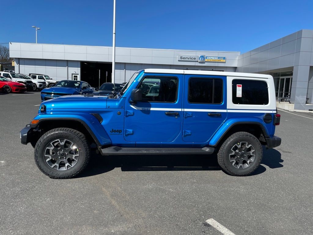 Quick Order Package 24G, Sahara Popular Equipment Group (12.3" Touchscreen Display, 4G LTE Wi-Fi Hot Spot, Alpine Premium Audio System, Apple CarPlay, Auto High Beam Headlamp Control, Auto-Dimming Rear-View Mirror, Blind Spot and Cross Path Detection, Connected Travel and Traffic Services, Connectivity - US/Canada, For More Info, Call 800-643-2112, Google Android Auto, GPS Navigation, Hard Seat Back, HD Radio, Integrated Center Stack Radio, Integrated Off-Road Camera, Integrated Voice Command with Bluetooth, Leather Wrapped Park Brake Handle, Leather Wrapped Shift Knob, McKinley Trimmed Seats, ParkSense Rear Park Assist System, Power 4-Way Driver Lumbar Adjust, Power 4-Way Passenger Lumbar Adjust, Power Adjust 8-Way Driver Seat, Power Adjust 8-Way Front Passenger Seat, Radio: Uconnect 5 Navigation with 12.3" Display, Side Steps, SiriusXM Radio Service, SiriusXM with 360L, and Universal Garage Door Opener), Whitecap Package (1941 Side Decals, Freedom Panel Storage Bag, Rear Window Defroster, Rear Window Wiper/Washer, White 3-Piece Hard Top, and White Grille with Platinum Silver Rings), 3.45 Overall Top Gear Ratio, 4-Wheel Disc Brakes, 8 Speakers, ABS brakes, Air Conditioning, Alloy wheels, AM/FM radio: SiriusXM with 360L, Apple CarPlay/Android Auto, Automatic temperature control, Aux Battery, Brake assist, Cloth Low-Back Bucket Seats, Compass, Delay-off headlights, Driver door bin, Driver vanity mirror, Dual front impact airbags, Dual front side impact airbags, Electronic Stability Control, Emergency communication system: Jeep Connect, Front anti-roll bar, Front Bucket Seats, Front Center Armrest w/Storage, Front dual zone A/C, Front fog lights, Front License Plate Bracket, Front reading lights, Fully automatic headlights, Heated door mirrors, Heated front seats, Heated steering wheel, Heavy Duty Suspension with Gas Shocks, Illuminated entry, Integrated roll-over protection, Jeep Trail Rated Kit, Low tire pressure warning, MOPAR All-Weather Floor Mats, Myflexcare Service Plan, Non-Lock Fuel Cap Without Discriminator, Occupant sensing airbag, Outside temperature display, Overhead airbag, Panic alarm, ParkView Rear Back-Up Camera, Passenger door bin, Passenger vanity mirror, Power door mirrors, Power steering, Power windows, Radio data system, Radio: Uconnect 5 with 12.3" Display, Rear anti-roll bar, Rear reading lights, Remote keyless entry, Security system, Speed control, Split folding rear seat, Steering wheel mounted audio controls, Stop-Start Dual Battery System, Tachometer, Telescoping steering wheel, Tilt steering wheel, Traction control, Trip computer, Variably intermittent wipers, Voltmeter, Wheels: 18" x 7.5 Machine/Painted Gray, and Wheels: 18" x 7.5" Machine/Painted Gray.