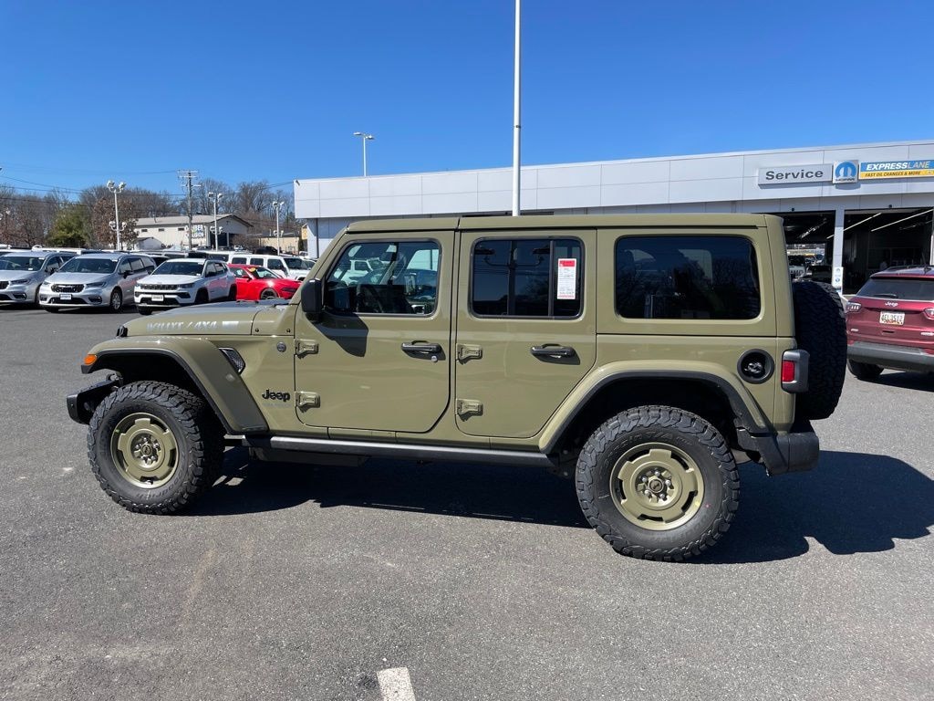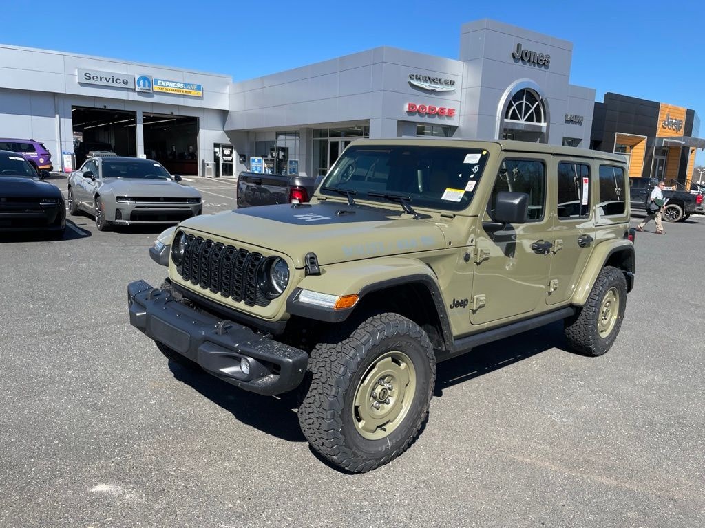Convenience Group (2-Door Passive Entry, Front Door Locks, Air Conditioning with Auto Temp Control, Air Filtering, Cluster 7.0" TFT Color Display, Emergency/Assistance Call, Heated Front Seats, Heated Steering Wheel, and Universal Garage Door Opener), Quick Order Package 22H Willys 41 (4WD Willys '41 Swing Gate Decal, 7 and 4 Pin Wiring Harness, 97 MPH Vehicle Max Speed Calibration, Adaptive Cruise Control with Stop, Advanced Brake Assist, Automatic Headlamps, Auxiliary Switches, Body Color Grille with Gloss Black Rings, Body Color Rubicon Highline Flare, Class II Receiver Hitch, Cloth Low-Back Bucket Seats, Conventional Differential Front Axle, Corning Gorilla Glass, Dana M210 Wide HD Tube Front Axle, Dana M220 Wide Rear Axle, Daytime Running Lamps LED Accents, Deep Tint Sunscreen Windows, E-Locker Rear Axle, Front LED Fog Lamps, Full Speed Forward Collision Warning Plus, Increased Travel Export Tuned Suspension, LED Premium Reflector Headlamps, MOPAR All-Weather Floor Mats, Off-Road Plus Mode, Power Heated Mirrors, Premium Tan Sunrider Soft Top, Premium Wrapped Steering Wheel, Security Alarm, Steel Front Bumper, Steel Rear Bumper, Sun Visors with Illuminated Vanity Mirrors, Wheels: 17" x 7.5" Fully Painted, Willys '41 Retro Edition Buzz Model, Willys '41 Retro Edition Hood Decal, Willys '41 Retro Edition Tailgate Plaque, Willys '41 Retro Edition Wrangler Decal, Willys '41 Retro Shift Bezel Insert, and Willys '41 US Edition U.S. Hood Decal), Quick Order Package 24H Willys 41, Steel Power Dome Hood Package (Power Dome Dual Vented Hood), 12.3" Touchscreen Display, 4-Wheel Disc Brakes, 4G LTE Wi-Fi Hot Spot, 8 Speakers, ABS brakes, Air Conditioning, AM/FM radio: SiriusXM with 360L, Apple CarPlay, Apple CarPlay/Android Auto, Aux Battery, Body Color 3-Piece Hard Top, Brake assist, Compass, Connectivity - US/Canada, Delay-off headlights, Driver door bin, Driver vanity mirror, Dual front impact airbags, Dual front side impact airbags, Electronic Stability Control, For More Info, Call 800-643-2112, Freedom Panel Storage Bag, Front anti-roll bar, Front Bucket Seats, Front Center Armrest w/Storage, Front fog lights, Front reading lights, Google Android Auto, Illuminated entry, Integrated Center Stack Radio, Integrated roll-over protection, Low tire pressure warning, No Soft Top, Non-Lock Fuel Cap Without Discriminator, Normal Duty Suspension, Occupant sensing airbag, Outside temperature display, Overhead airbag, Panic alarm, ParkView Rear Back-Up Camera, Passenger door bin, Passenger vanity mirror, Power steering, Power windows, Radio data system, Radio: Uconnect 5 with 12.3" Display, Rear anti-roll bar, Rear reading lights, Rear Window Defroster, Rear Window Wiper/Washer, Remote keyless entry, SiriusXM Radio Service, SiriusXM with 360L, Speed control, Split folding rear seat, Steering wheel mounted audio controls, Stop-Start Dual Battery System, Tachometer, Telescoping steering wheel, Tilt steering wheel, Traction control, Trip computer, Variably intermittent wipers, and Wheels: 17" x 7.5" Black Steel Styled.