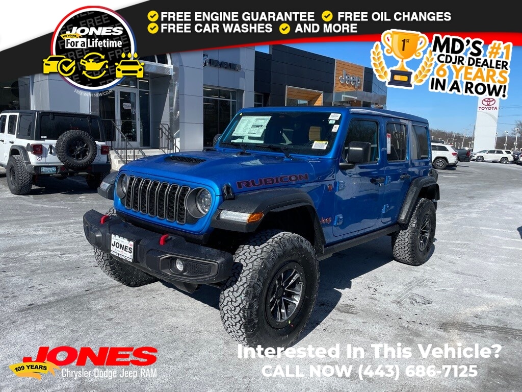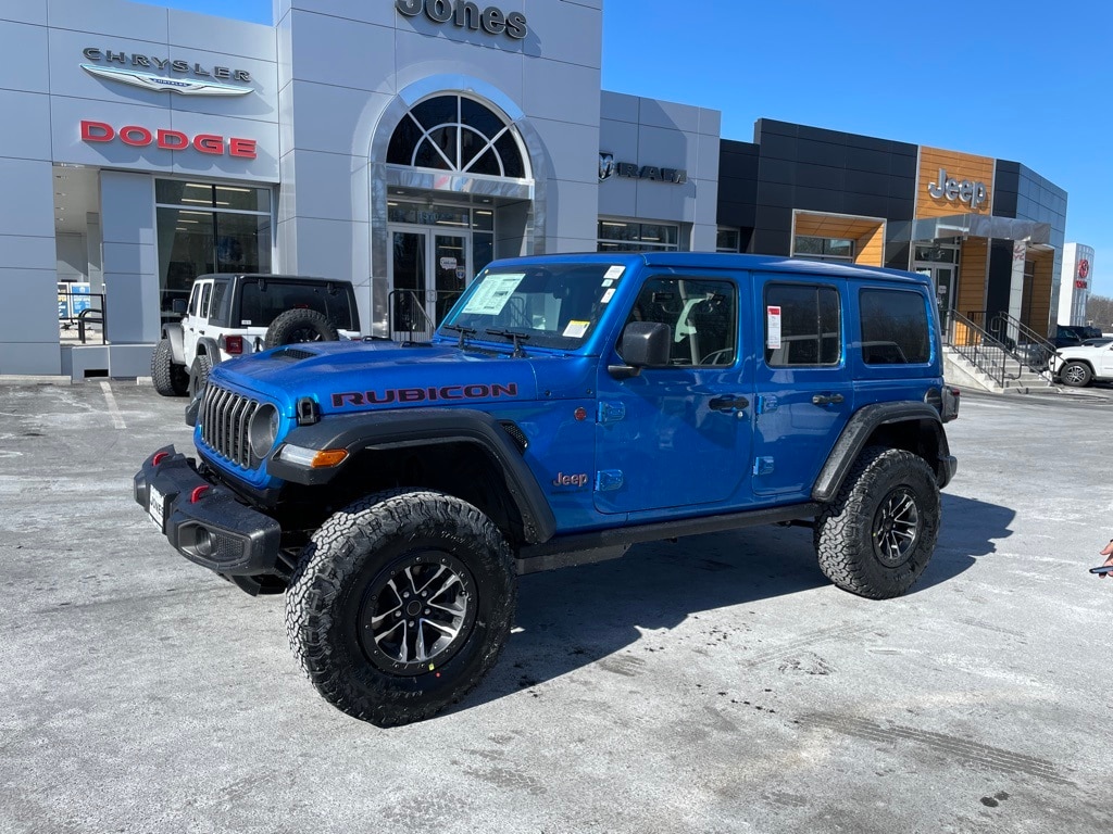 Convenience Group (Heated Front Seats, Heated Steering Wheel, and Universal Garage Door Opener), Quick Order Package 23R Rubicon, Quick Order Package 24R Rubicon, Steel Performance Hood Package (Performance Hood), Xtreme 35 Tire Package (35" Tire Suspension, Anti-Lock 4-Wheel Disc Perf Brakes, MOPAR Hinge-Gate Reinforcement, MOPAR Jack Spacer, MOPAR Tire Relocation Kit, Wheel Flare Extensions, and Wheels: 17" x 8" Machined with Black Pockets), 12.3" Touchscreen Display, 4-Wheel Disc Brakes, 4G LTE Wi-Fi Hot Spot, 8 Speakers, ABS brakes, Air Conditioning, Alloy wheels, Alpine Premium Audio System, AM/FM radio: SiriusXM with 360L, Apple CarPlay, Apple CarPlay/Android Auto, Automatic temperature control, Aux Battery, Auxiliary Switches, Brake assist, Class II Receiver Hitch, Cloth Low-Back Bucket Seats, Compass, Connectivity - US/Canada, Delay-off headlights, Driver door bin, Driver vanity mirror, Dual front impact airbags, Dual front side impact airbags, Electronic Stability Control, Emergency communication system: Jeep Connect, For More Info, Call 800-643-2112, Front anti-roll bar, Front Bucket Seats, Front Center Armrest w/Storage, Front dual zone A/C, Front fog lights, Front License Plate Bracket, Front reading lights, Fully automatic headlights, Google Android Auto, Heated door mirrors, Illuminated entry, Integrated Center Stack Radio, Integrated roll-over protection, Jeep Trail Rated Kit, Low tire pressure warning, MOPAR All-Weather Floor Mats, Myflexcare Service Plan, Non-Lock Fuel Cap Without Discriminator, Occupant sensing airbag, Outside temperature display, Overhead airbag, Panic alarm, ParkView Rear Back-Up Camera, Passenger door bin, Passenger vanity mirror, Performance Suspension, Power door mirrors, Power steering, Power Top Quarter Window Storage Bag, Power windows, Radio data system, Radio: Uconnect 5 with 12.3" Display, Rear anti-roll bar, Rear reading lights, Rear Window Defroster, Rear Window Wiper/Washer, Remote keyless entry, Removable Rear Quarter Windows, Security system, SiriusXM Radio Service, SiriusXM with 360L, Sky One-Touch Power Top, Speed control, Split folding rear seat, Steering wheel mounted audio controls, Stop-Start Dual Battery System, Tachometer, Telescoping steering wheel, Tilt steering wheel, Traction control, Trip computer, Variably intermittent wipers, Voltmeter, and Wheels: 17" x 7.5" Machined/Painted Black.