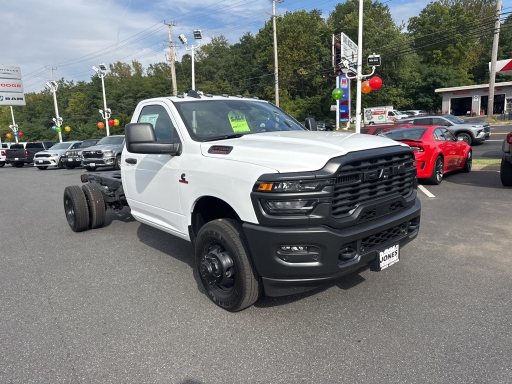 Quick Order Package 25A Tradesman, 4 Speakers, 4-Wheel Disc Brakes, 40/20/40 Split Bench Seat, 4G LTE Wi-Fi Hot Spot, ABS brakes, Air Conditioning, AM/FM radio: SiriusXM, Apple CarPlay, Apple CarPlay/Android Auto, Black Exterior Mirrors, Compass, Connectivity - US/Canada, Delay-off headlights, Driver door bin, Dual Alternators Rated at 480 Amps, Dual front impact airbags, Dual rear wheels, Electronic Stability Control, Emergency communication system: RAM Connect, For Details, Visit DriveUconnect.com, Front anti-roll bar, Front Armrest w/Cupholders, Front Center Armrest w/Storage, Front fog lights, Front License Plate Bracket, Front reading lights, Fully automatic headlights, Global Telematics Box Module (TBM), Google Android Auto, GPS Antenna Input, HD Vinyl 40/20/40 Split Bench Seat, Integrated Voice Command w/Bluetooth, Manual Adjust 4-Way Driver Seat, Manual Adjust 4-Way Front Passenger Seat, Manual Folding Exterior Mirrors, Manual Telescoping Mirrors, Occupant sensing airbag, Outside temperature display, Overhead console, ParkSense Front/Rear Park Assist System, Passenger door bin, Passenger vanity mirror, Power steering, Radio data system, Radio: Uconnect 5 w/8.4" Display, Rear anti-roll bar, Remote USB Port - Charge Only, Speed control, Storage Tray, Tachometer, Temperature & Compass Gauge, Tilt steering wheel, Traction control, Variably intermittent wipers, Voltmeter, and Wheels: 17" x 6.0" Black Painted SteeL.