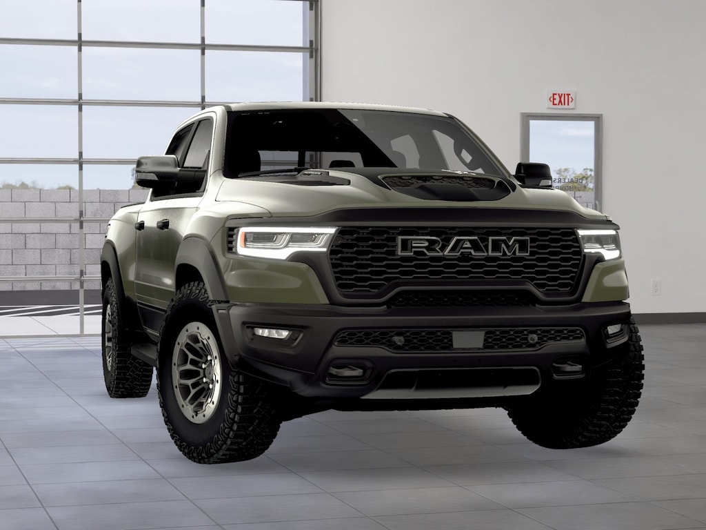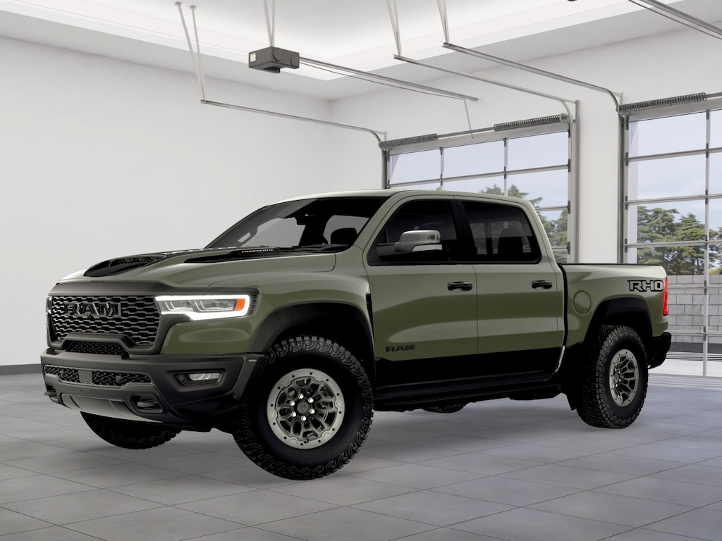 Quick Order Package 22Y RHO, RHO Level 1 Equipment Group (12-Way/1-Way Trailer Connector, 14.4" Touchscreen Display, 240 Amp Alternator, 4G LTE Wi-Fi Hot Spot, Connected Travel & Traffic Services, Connectivity - US/Canada, Disassociated Touchscreen Display, Driver Power Seat Back Massage, Driver Seat Memory, Driver/Passenger Wrapped Assist Handles, Drowsy Driver Detection, Dual Wireless Charging Pad, Evasive Steer Assist, Exterior Mirrors w/Memory, Front Passenger Interactive Display, Front Passenger Power Seat Back Massage, Full Length Premium Upgraded Floor Console, GPS Navigation, Hands-Free Active Driving Assist System, harman/kardon 19 Speaker Premium Sound, HD Radio, Heads-Up Display, Heated Second Row Seats, Integrated Center Stack Radio, Integrated Voice Command w/Bluetooth, Intersection Collision Assist System, Leather/Carbon Flat-Bottom Steering Wheel, LED CHMSL Lamp, Luxury Front Door Trim Panel, Power Adjustable Pedals w/Memory, Power Tailgate, Premium Wrapped I/P Bezel, Radio: Uconnect 5 Nav w/14.4" Display, Radio/Driver Seat/Mirrors/Pedals Memory, Rain Sensitive Windshield Wipers, Real Carbon Fiber Interior Accents, Rear 60/40 Folding Split Recline Seat, SiriusXM Radio Service, Smartphone As A Key Capable, Surround View Camera System, Traffic Sign Recognition, USB Host Flip, Ventilated Front Seats, and Ventilated Rear Seats), 10 Speakers, 3.92 Rear Axle Ratio, 4-Wheel Disc Brakes, ABS brakes, Adaptive suspension, Adjustable pedals, Air Conditioning, Alloy wheels, AM/FM radio, Apple CarPlay/Android Auto, Auto High-beam Headlights, Auto Power-Folding Mirrors, Auto-dimming door mirrors, Auto-Dimming Exterior Driver Mirror, Auto-dimming Rear-View mirror, Automatic temperature control, Brake assist, Compass, Delay-off headlights, Dome Dual LED Reading Lamp, Driver door bin, Driver vanity mirror, Dual front impact airbags, Dual front side impact airbags, Dual-Pane Panoramic Sunroof, Electronic Stability Control, Exterior Mirrors Courtesy Lamps, Exterior Mirrors w/Heating Element, Exterior Mirrors w/Supplemental Signals, Exterior Parking Camera Rear, Flareside Box, Front anti-roll bar, Front Bucket Seats, Front Center Armrest w/Storage, Front dual zone A/C, Front fog lights, Front License Plate Bracket, Front reading lights, Front wheel independent suspension, Fully automatic headlights, Garage door transmitter, Heated door mirrors, Heated front seats, Heated steering wheel, Illuminated entry, Leather Shift Knob, Leather steering wheel, Leather Trimmed Bucket Seats, Low tire pressure warning, MOPAR Off-Road Style Running Boards, MOPAR RHO Exterior Graphics, MOPAR RHO Hood Graphics, Navigation System, Occupant sensing airbag, Outside temperature display, Overhead airbag, Overhead console, Panic alarm, Passenger door bin, Passenger vanity mirror, Power door mirrors, Power driver seat, Power passenger seat, Power steering, Power windows, Radio data system, Radio: Uconnect 5 Nav w/12.0" Display, Rear reading lights, Rear seat center armrest, Rear step bumper, Rear window defroster, Red Interior Accents, Remote keyless entry, Security system, Speed control, Split folding rear seat, Sport steering wheel, Steering wheel mounted audio controls, Tachometer, Telescoping steering wheel, Tilt steering wheel, Traction control, Trip computer, Turn signal indicator mirrors, Variably intermittent wipers, Voltmeter, Wheels: 18" x 9" Bead-Lock Aluminum, and Wheels: 18" x 9" Black Paint/Polish Aluminum.