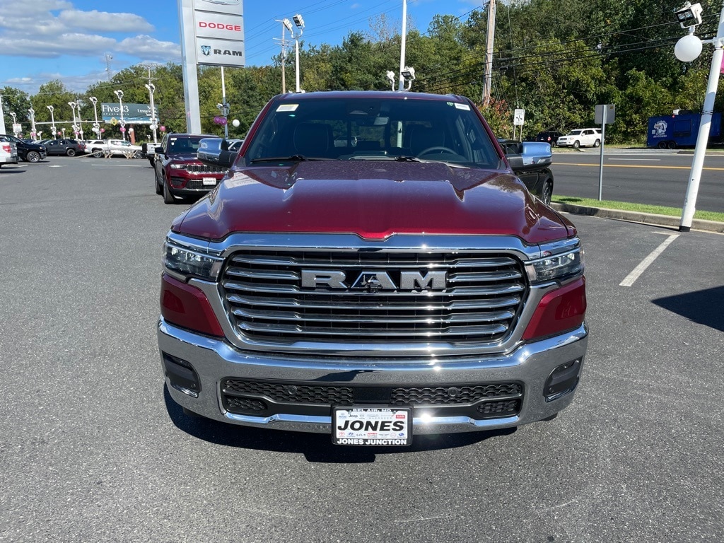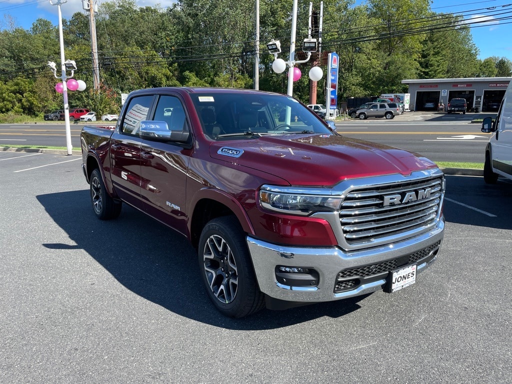 Laramie Level 2 Equipment Group (14.4" Touchscreen Display, 4G LTE Wi-Fi Hot Spot, Apple CarPlay, Cluster 12" TFT Color Display, Connected Travel & Traffic Services, Connectivity - US/Canada, Disassociated Touchscreen Display, Dual Wireless Charging Pad, Front Passenger Interactive Display, Global Telematics Box Module (TBM), Google Android Auto, GPS Antenna Input, GPS Navigation, harman/kardon 19 Speaker Premium Sound, HD Radio, Integrated Center Stack Radio, Integrated Voice Command w/Bluetooth, Power Tailgate, Radio: Uconnect 5 Nav w/14.4" Display, Rain Sensitive Windshield Wipers, Secondary Active Grille Shutters, SiriusXM Radio Service, SiriusXM w/360L, Smartphone As A Key Capable, and USB Host Flip), Quick Order Package 21H Laramie, 10 Speakers, 3.55 Rear Axle Ratio, 4-Wheel Disc Brakes, ABS brakes, Active Noise Control System, Air Conditioning, Alloy wheels, AM/FM radio: SiriusXM with 360L, Apple CarPlay/Android Auto, Audio memory, Auto High-beam Headlights, Auto Power-Folding Mirrors, Auto-dimming door mirrors, Auto-Dimming Exterior Driver Mirror, Auto-dimming Rear-View mirror, Automatic temperature control, Brake assist, Bumpers: chrome, Chrome Exterior Mirrors, Compass, Convex Wide-Angle Exterior Mirror Insert, Delay-off headlights, Driver door bin, Driver vanity mirror, Dual front impact airbags, Dual front side impact airbags, Electronic Stability Control, Exterior Mirrors Courtesy Lamps, Exterior Mirrors w/Heating Element, Exterior Mirrors w/Memory, Exterior Mirrors w/Supplemental Signals, Front anti-roll bar, Front Bucket Seats, Front Center Armrest w/Storage, Front dual zone A/C, Front fog lights, Front License Plate Bracket, Front reading lights, Front wheel independent suspension, Fully automatic headlights, Garage door transmitter, Heated door mirrors, Heated front seats, Heated rear seats, Heated steering wheel, Illuminated entry, Leather steering wheel, Leather Trimmed Bucket Seats, Low tire pressure warning, Memory seat, MOPAR Front & Rear Rubber Floor Mats, MyFlexCare Service Plan, Navigation System, Occupant sensing airbag, Off-Road Information Pages, Outside temperature display, Overhead airbag, Overhead console, Panic alarm, ParkView Rear Back-Up Camera, Passenger door bin, Passenger vanity mirror, Power door mirrors, Power driver seat, Power passenger seat, Power steering, Power windows, Radio data system, Radio: Uconnect 5 Nav w/12.0" Display, RAM Grille Badge - Chrome, Rear anti-roll bar, Rear reading lights, Rear seat center armrest, Rear step bumper, Remote keyless entry, Security system, Speed control, Split folding rear seat, Steering wheel mounted audio controls, Tachometer, Telescoping steering wheel, Tilt steering wheel, Traction control, Trailer Brake Control, Trip computer, Turn signal indicator mirrors, Variably intermittent wipers, Ventilated front seats, Voltmeter, and Wheels: 20" x 9" Premium Paint/Polish.