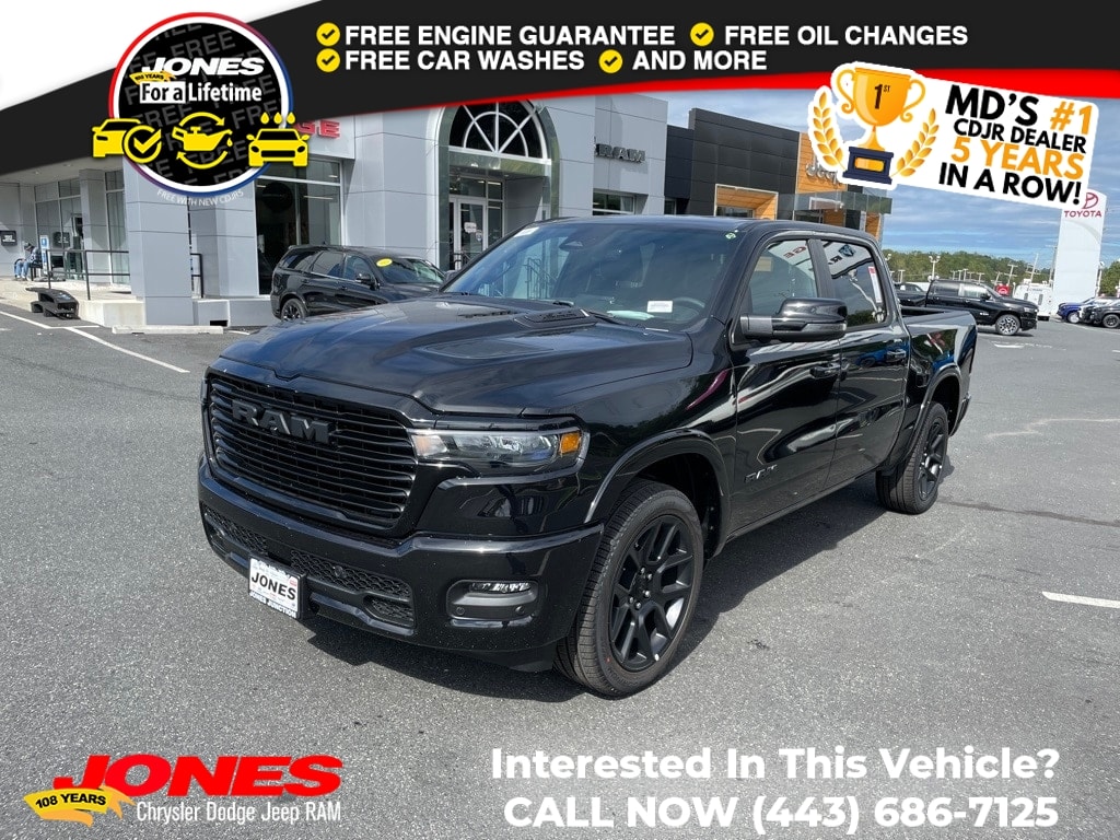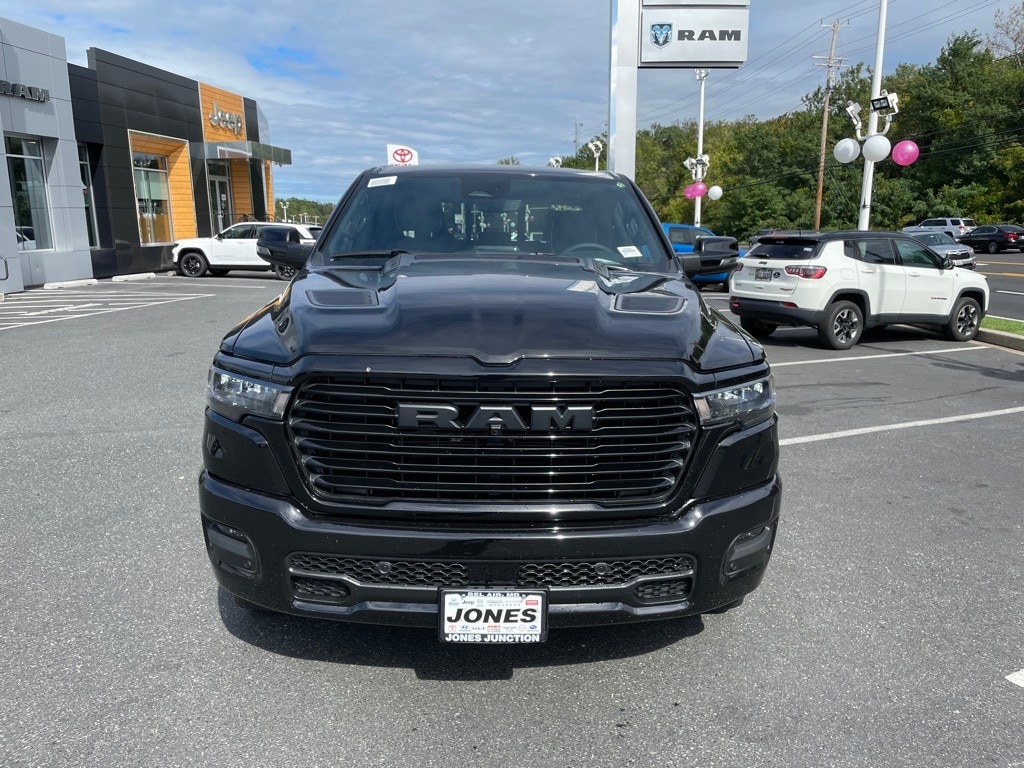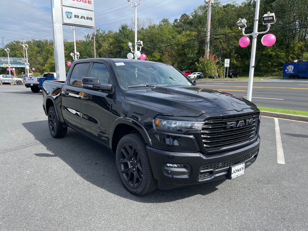 Laramie Level 2 Equipment Group (14.4" Touchscreen Display, 4G LTE Wi-Fi Hot Spot, Cluster 12" TFT Color Display, Connected Travel & Traffic Services, Connectivity - US/Canada, Front Passenger Interactive Display, GPS Navigation, harman/kardon 19 Speaker Premium Sound, Integrated Center Stack Radio, Integrated Voice Command w/Bluetooth, Power Tailgate, Radio: Uconnect 5 Nav w/14.4" Display, Rain Sensitive Windshield Wipers, SiriusXM Radio Service, SiriusXM w/360L, and USB Host Flip), Night Edition (Accent Color Door Handles, Accent Color Premium Power Mirrors, Accent Color Tailgate Handle, Anti-Spin Differential Rear Axle, Auto Power-Folding Mirrors, Auto-Dimming Exterior Driver Mirror, Black Exterior Truck Badging, Black Headlamp Bezels, Black Interior Accents, Black Painted Exterior Mirrors Caps, Black Tail Lamp Bezels, Body Color Front Bumper, Body Color Rear Bumper w/Step Pads, Convex Wide-Angle Exterior Mirror Insert, Dual Exhaust w/Black Tips, Exterior Mirrors Approach Lamps, Exterior Mirrors Courtesy Lamps, Exterior Mirrors w/Heating Element, Exterior Mirrors w/Memory, Exterior Mirrors w/Supplemental Signals, Grille Surround 3 Black Texture 2 Black, Pirelli Brand Tires, Proximity Approach/Departure Lamps, RAM Grille Badge - Black, Sport Performance Hood, and Wheels: 22" x 9" Forged Aluminum), Quick Order Package 21H Laramie, 10 Speakers, 3.55 Rear Axle Ratio, 4-Wheel Disc Brakes, ABS brakes, Active Noise Control System, Air Conditioning, Alloy wheels, AM/FM radio: SiriusXM with 360L, Apple CarPlay/Android Auto, Audio memory, Auto High-beam Headlights, Auto-dimming door mirrors, Auto-dimming Rear-View mirror, Automatic temperature control, Brake assist, Bumpers: chrome, Chrome Exterior Mirrors, Compass, Delay-off headlights, Driver door bin, Driver vanity mirror, Dual front impact airbags, Dual front side impact airbags, Electronic Stability Control, Front anti-roll bar, Front Bucket Seats, Front Center Armrest w/Storage, Front dual zone A/C, Front fog lights, Front License Plate Bracket, Front reading lights, Front wheel independent suspension, Fully automatic headlights, Garage door transmitter, Heated door mirrors, Heated front seats, Heated rear seats, Heated steering wheel, Illuminated entry, Leather steering wheel, Leather Trimmed Bucket Seats, Low tire pressure warning, Memory seat, MOPAR Front & Rear Rubber Floor Mats, Navigation System, Occupant sensing airbag, Off-Road Information Pages, Outside temperature display, Overhead airbag, Overhead console, Panic alarm, ParkView Rear Back-Up Camera, Passenger door bin, Passenger vanity mirror, Power door mirrors, Power driver seat, Power passenger seat, Power steering, Power windows, Radio data system, Radio: Uconnect 5 Nav w/12.0" Display, RAM Grille Badge - Chrome, Rear anti-roll bar, Rear reading lights, Rear seat center armrest, Rear step bumper, Remote keyless entry, Security system, Speed control, Split folding rear seat, Steering wheel mounted audio controls, Tachometer, Telescoping steering wheel, Tilt steering wheel, Traction control, Trailer Brake Control, Trip computer, Turn signal indicator mirrors, Variably intermittent wipers, Ventilated front seats, Voltmeter, and Wheels: 20" x 9" Premium Paint/Polish.