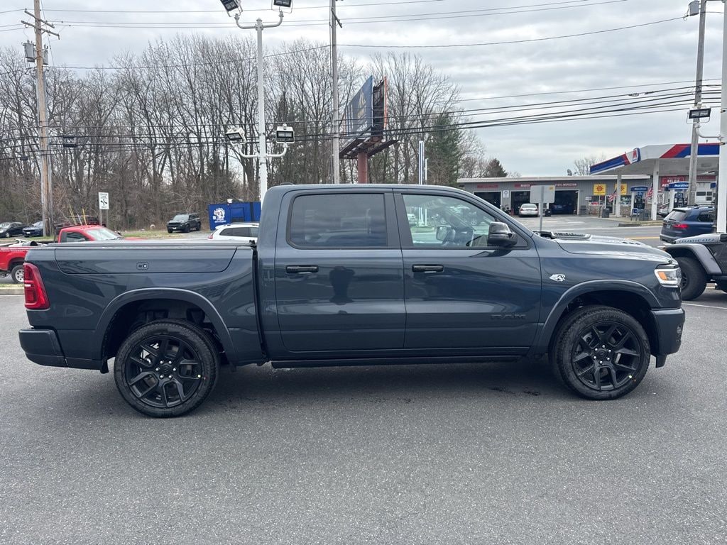 Bed Utility Group (Exterior 115V AC Outlet and MOPAR 4 Adjustable Cargo Tie-Down Hooks), Limited Level An Equipment Group (12-Way/1-Way Trailer Connector, 14.4" Touchscreen Display, 240 Amp Alternator, 4G LTE Wi-Fi Hot Spot, Apple CarPlay, Connected Travel and Traffic Services, Connectivity - US/Canada, Disassociated Touchscreen Display, Drowsy Driver Detection, Evasive Steer Assist, Global Telematics Box Module, Google Android Auto, GPS Antenna Input, GPS Navigation, Hands-Free Active Driving Assist System, HD Radio, Heads-Up Display, Integrated Center Stack Radio, Integrated Voice Command with Bluetooth, Intersection Collision Assist System, LED CHMSL Lamp, Radio: Uconnect 5 Nav with 14.4" Display, RamBox Cargo Management System, SiriusXM Radio Service, SiriusXM with 360L, Smartphone as a Key Capable, Surround View Camera System, Traffic Sign Recognition, Tri-Fold Tonneau Cover, and USB Host Flip), Night Edition (Accent Color Door Handles, Accent Color Premium Power Mirrors, Accent Color Tailgate Handle, Auto Power-Folding Mirrors, Auto-Dimming Exterior Driver Mirror, Black Day Light Opening Moldings, Black Exterior Truck Badging, Black Grille Surround Texture 7 Black, Black Headlamp Bezels, Black Painted Exterior Mirrors Caps, Black Tail Lamp Bezels, Body Color Front Bumper, Body Color Rear Bumper with Step Pads, Convex Wide-Angle Exterior Mirror Insert, Dual Exhaust with Black Tips, Exterior Mirrors Courtesy Lamps, Exterior Mirrors with Heating Element, Exterior Mirrors with Memory, Exterior Mirrors with Supplemental Signals, Pirelli Brand Tires, RAM Grille Badge - Black, Sport Performance Hood, and Wheels: 22" x 9" Premium Black Aluminum), Quick Order Package 22M Limited, Quick Order Package 27M Limited, 19 Speakers, 3.92 Rear Axle Ratio, 4-Wheel Disc Brakes, ABS brakes, Active Noise Control System, Adjustable pedals, Air Conditioning, Alloy wheels, AM/FM radio, Apple CarPlay/Android Auto, Audio memory, Auto High-beam Headlights, Auto-dimming door mirrors, Auto-dimming Rear-View mirror, Auto-leveling suspension, Automatic temperature control, Bodyside moldings, Brake assist, Bumpers: chrome, Chrome Exterior Mirrors, Compass, Delay-off headlights, Dome Dual LED Reading Lamp, Driver door bin, Driver vanity mirror, Dual front impact airbags, Dual front side impact airbags, Dual-Pane Panoramic Sunroof, Electronic Stability Control, Exterior Parking Camera Rear, Front anti-roll bar, Front Bucket Seats, Front Center Armrest w/Storage, Front dual zone A/C, Front fog lights, Front License Plate Bracket, Front reading lights, Front wheel independent suspension, Fully automatic headlights, Garage door transmitter, Genuine wood console insert, Genuine wood dashboard insert, Genuine wood door panel insert, harman/kardon® Speakers, Heated door mirrors, Heated front seats, Heated rear seats, Heated steering wheel, Illuminated entry, Leather steering wheel, LED Dome/Reading Lamp, Low tire pressure warning, Memory seat, Multi-Function Tailgate, MyFlexCare Service Plan, Navigation System, Occupant sensing airbag, Outside temperature display, Overhead airbag, Overhead console, Panic alarm, Passenger door bin, Passenger vanity mirror, Pedal memory, Power door mirrors, Power driver seat, Power passenger seat, Power steering, Power windows, Premium Quilted Leather Bucket Seats, Radio data system, Radio: Uconnect 5 Navigation with 12.0" Display, Rain sensing wipers, RAM's Head Badge, Rear anti-roll bar, Rear reading lights, Rear seat center armrest, Rear step bumper, Rear window defroster, Remote keyless entry, Remote Tailgate Release, Security system, Speed control, Split folding rear seat, Steering wheel mounted audio controls, Tachometer, Telescoping steering wheel, Tilt steering wheel, Traction control, Trailer Brake Control, Trip computer, Turn signal indicator mirrors, Variably intermittent wipers, Ventilated front seats
