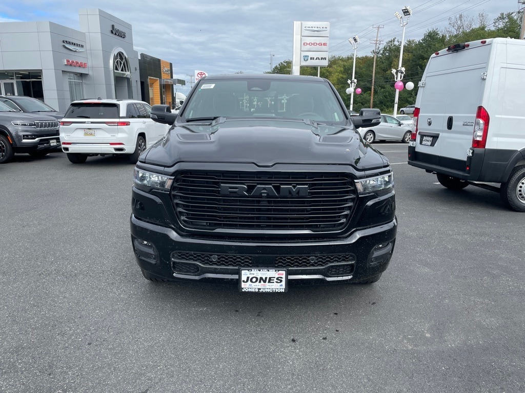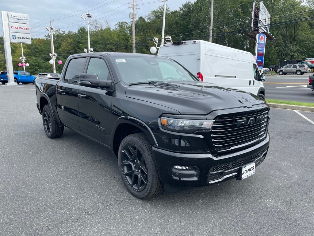 Laramie Level 2 Equipment Group (14.4" Touchscreen Display, 4G LTE Wi-Fi Hot Spot, Cluster 12" TFT Color Display, Connected Travel & Traffic Services, Connectivity - US/Canada, Front Passenger Interactive Display, GPS Navigation, harman/kardon 19 Speaker Premium Sound, Integrated Center Stack Radio, Integrated Voice Command w/Bluetooth, Power Tailgate, Radio: Uconnect 5 Nav w/14.4" Display, Rain Sensitive Windshield Wipers, SiriusXM Radio Service, SiriusXM w/360L, and USB Host Flip), Night Edition (Accent Color Door Handles, Accent Color Premium Power Mirrors, Accent Color Tailgate Handle, Anti-Spin Differential Rear Axle, Auto Power-Folding Mirrors, Auto-Dimming Exterior Driver Mirror, Black Exterior Truck Badging, Black Headlamp Bezels, Black Interior Accents, Black Painted Exterior Mirrors Caps, Black Tail Lamp Bezels, Body Color Front Bumper, Body Color Rear Bumper w/Step Pads, Convex Wide-Angle Exterior Mirror Insert, Dual Exhaust w/Black Tips, Exterior Mirrors Approach Lamps, Exterior Mirrors Courtesy Lamps, Exterior Mirrors w/Heating Element, Exterior Mirrors w/Memory, Exterior Mirrors w/Supplemental Signals, Grille Surround 3 Black Texture 2 Black, Pirelli Brand Tires, Proximity Approach/Departure Lamps, RAM Grille Badge - Black, Sport Performance Hood, and Wheels: 22" x 9" Forged Aluminum), Quick Order Package 21H Laramie, 10 Speakers, 3.55 Rear Axle Ratio, 4-Wheel Disc Brakes, ABS brakes, Active Noise Control System, Air Conditioning, Alloy wheels, AM/FM radio: SiriusXM with 360L, Apple CarPlay/Android Auto, Audio memory, Auto High-beam Headlights, Auto-dimming door mirrors, Auto-dimming Rear-View mirror, Automatic temperature control, Brake assist, Bumpers: chrome, Chrome Exterior Mirrors, Compass, Delay-off headlights, Dome Dual LED Reading Lamp, Driver door bin, Driver vanity mirror, Dual front impact airbags, Dual front side impact airbags, Dual-Pane Panoramic Sunroof, Electronic Stability Control, Front anti-roll bar, Front Bucket Seats, Front Center Armrest w/Storage, Front dual zone A/C, Front fog lights, Front License Plate Bracket, Front reading lights, Front wheel independent suspension, Fully automatic headlights, Garage door transmitter, Heated door mirrors, Heated front seats, Heated rear seats, Heated steering wheel, Illuminated entry, Leather steering wheel, Leather Trimmed Bucket Seats, LED Dome/Reading Lamp, Low tire pressure warning, Memory seat, MOPAR Front & Rear Rubber Floor Mats, Navigation System, Occupant sensing airbag, Off-Road Information Pages, Outside temperature display, Overhead airbag, Overhead console, Panic alarm, ParkView Rear Back-Up Camera, Passenger door bin, Passenger vanity mirror, Power door mirrors, Power driver seat, Power passenger seat, Power steering, Power windows, Radio data system, Radio: Uconnect 5 Nav w/12.0" Display, RAM Grille Badge - Chrome, Rear anti-roll bar, Rear reading lights, Rear seat center armrest, Rear step bumper, Remote keyless entry, Security system, Speed control, Split folding rear seat, Steering wheel mounted audio controls, Tachometer, Telescoping steering wheel, Tilt steering wheel, Traction control, Trailer Brake Control, Trip computer, Turn signal indicator mirrors, Variably intermittent wipers, Ventilated front seats, Voltmeter, and Wheels: 20" x 9" Premium Paint/Polish.