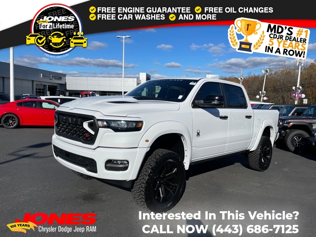 Bed Utility Group (Exterior 115V AC Outlet, MOPAR 4 Adjustable Cargo Tie-Down Hooks, MOPAR Spray In Bedliner, and Pick-Up Box Lighting), Big Horn Level 2 Equipment Group (115V Auxiliary Power Outlet, 115V Auxiliary Rear Power Outlet, 12" Touchscreen Display, 2nd Row In Floor Storage Bins, 3 Rear Seat Head Restraints, 4 Way Front Headrests, 400W Inverter, 4G LTE Wi-Fi Hot Spot, 9 Amplified Speakers w/Subwoofer, Air Conditioning ATC w/Dual Zone Control, Apple CarPlay, Auto Power-Folding Mirrors, Auto-Dimming Exterior Driver Mirror, Auto-Dimming Rear-View Mirror, Black Exterior Mirrors, Black Premium Power Mirrors, Body Color Fender Flares, Bucket Seats, Center Console Parts Module, Cluster 7.0" TFT Color Display, Configurable Drive Mode, Connected Travel & Traffic Services, Connectivity - US/Canada, Convex Wide-Angle Exterior Mirror Insert, Deluxe Cloth Bucket Seats, Disassociated Touchscreen Display, Exterior Mirrors Courtesy Lamps, Exterior Mirrors w/Heating Element, Exterior Mirrors w/Supplemental Signals, Front Seat Back Map Pockets, Full Length Floor Console, Global Telematics Box Module (TBM), Glove Box Lamp, Google Android Auto, GPS Antenna Input, GPS Navigation, HD Radio, Heated Front Seats, Heated Steering Wheel, Integrated Center Stack Radio, Integrated Voice Command w/Bluetooth, Leather Wrapped Steering Wheel, LED Dome Lamp w/On/Off Switch, LED Footwell Lighting, Manual Adjust 4-Way Front Passenger Seat, Media Hub w/2 Charge Only USBs, Overhead LED Lamps, Power 2-Way Driver Lumbar Adjust, Power Adjust 8-Way Driver Seat, Power Adjustable Pedals, Premium Overhead Console, Radio: Uconnect 5 Nav w/12.0" Display, Rear 60/40 Folding Seat, Rear Center Armrest, Rear Power Sliding Window, Rear Window Defroster, Remote Tailgate Release, Security Alarm, SiriusXM Radio Service, SiriusXM w/360L, Steering Wheel Mounted Audio Controls, Sun Visors w/Illuminated Vanity Mirrors, Universal Garage Door Opener, USB Host Flip, and Wheels: 20" x 9" Aluminum Chrome Clad (WRK)), Night Edition (Accent Color Door Handles, Accent Color Premium Power Mirrors, Accent Color Tailgate Handle, Anti-Spin Differential Rear Axle, Black Exterior Truck Badging, Black Headlamp Bezels, Black Interior Accents, Black Painted Exterior Mirrors Caps, Black Tail Lamp Bezels, Body Color Front Bumper, Body Color Rear Bumper w/Step Pads, Dual Exhaust w/Black Tips, Grille Black Surround Black Mesh, RAM Grille Badge - Black, and Wheels: 20" x 9.0" Aluminum Painted Clad), Quick Order Package 27Z Big Horn, 33 Gallon Fuel Tank, 4-Wheel Disc Brakes, 48V Belt Starter Generator, 6 Speakers, ABS brakes, Air Conditioning, Alloy wheels, AM/FM radio, Apple CarPlay/Android Auto, Auto High-beam Headlights, Brake assist, Bumpers: chrome, Cloth Bucket Seats, Cluster 12" TFT Color Display, Compass, Delay-off headlights, Dome Dual LED Reading Lamp, Driver door bin, Dual front impact airbags, Dual front side impact airbags, Dual-Pane Panoramic Sunroof, Electronic Stability Control, Front anti-roll bar, Front Bucket Seats, Front Center Armrest w/Storage, Front fog lights, Front License Plate Bracket, Front reading lights, Front wheel independent suspension, Fully automatic headlights, Heated door mirrors, Illuminated entry, Low tire pressure warning, Manual Adjust 4-Way Driver Seat, Manual Folding Exterior Mirrors, Manufacturer's Statement of Origin, Occupant sensing airbag, Outside temperature display, Overhead airbag, Overhead console, Panic alarm, ParkView Rear Back-Up Camera, Passenger door bin, Passenger vanity mirror, Power door mirrors, Power steering, Power windows, Radio data system, Radio: Uconnect 5 W w/8.4" Display, RAM Grille Badge - Chrome, Rear anti-roll bar, Rear step bumper, Rear Underseat Compartment Storage, Remote keyless entry, Speed control, Supplier Part Tracking (J-1), Tachometer, Telescoping steering wheel, Tilt steering wheel, Tract