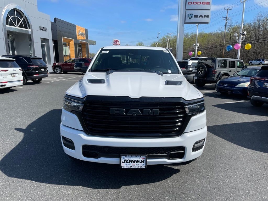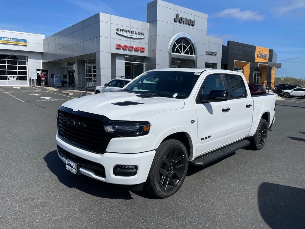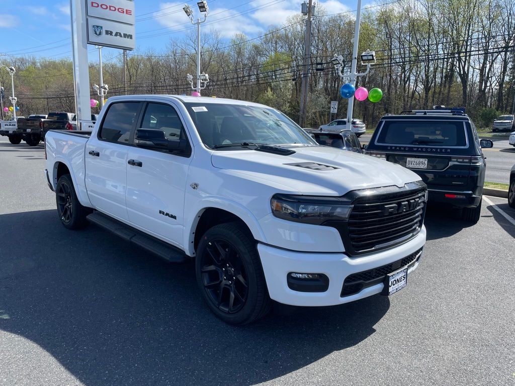 Bed Utility Group (Exterior 115V AC Outlet, MOPAR 4 Adjustable Cargo Tie-Down Hooks, and MOPAR Spray in Bedliner), Laramie Level 1 Equipment Group (Rain Sensitive Windshield Wipers and Remote Tailgate Release), Night Edition (Accent Color Door Handles, Accent Color Premium Power Mirrors, Accent Color Tailgate Handle, Anti-Spin Differential Rear Axle, Auto Power-Folding Mirrors, Auto-Dimming Exterior Driver Mirror, Black Exterior Truck Badging, Black Headlamp Bezels, Black Interior Accents, Black Painted Exterior Mirrors Caps, Black Tail Lamp Bezels, Body Color Front Bumper, Body Color Rear Bumper with Step Pads, Convex Wide-Angle Exterior Mirror Insert, Dual Exhaust with Black Tips, Exterior Mirrors Approach Lamps, Exterior Mirrors Courtesy Lamps, Exterior Mirrors with Heating Element, Exterior Mirrors with Memory, Exterior Mirrors with Supplemental Signals, Grille Surround 3 Black Texture 2 Black, Pirelli Brand Tires, Proximity Approach/Departure Lamps, RAM Grille Badge - Black, Sport Performance Hood, and Wheels: 22" x 9" Forged Aluminum), Quick Order Package 27H Laramie, 10 Speakers, 4-Wheel Disc Brakes, 4G LTE Wi-Fi Hot Spot, ABS brakes, Active Noise Control System, Adjustable pedals, Air Conditioning, Alloy wheels, AM/FM radio: SiriusXM with 360L, Apple CarPlay/Android Auto, Audio memory, Auto High-beam Headlights, Auto-dimming door mirrors, Auto-dimming Rear-View mirror, Automatic temperature control, Brake assist, Bumpers: chrome, Chrome Exterior Mirrors, Compass, Connected Travel and Traffic Services, Connectivity - US/Canada, Delay-off headlights, Dome Dual LED Reading Lamp, Driver door bin, Driver vanity mirror, Dual front impact airbags, Dual front side impact airbags, Dual-Pane Panoramic Sunroof, Electronic Stability Control, Front anti-roll bar, Front Bucket Seats, Front Center Armrest w/Storage, Front dual zone A/C, Front fog lights, Front License Plate Bracket, Front reading lights, Front wheel independent suspension, Fully automatic headlights, Garage door transmitter, GPS Navigation, Heated door mirrors, Heated front seats, Heated rear seats, Heated steering wheel, Illuminated entry, Integrated Center Stack Radio, Integrated Voice Command with Bluetooth, Leather steering wheel, Leather Trimmed Bucket Seats, LED Dome/Reading Lamp, Low tire pressure warning, Memory seat, Mopar Black Tubular Side Steps, MOPAR Front and Rear Rubber Floor Mats, MyFlexCare Service Plan, Navigation System, Occupant sensing airbag, Off-Road Information Pages, Outside temperature display, Overhead airbag, Overhead console, Panic alarm, ParkView Rear Back-Up Camera, Passenger door bin, Passenger vanity mirror, Pedal memory, Power door mirrors, Power driver seat, Power passenger seat, Power steering, Power windows, Radio data system, Radio: Uconnect 5 Navigation with 12.0" Display, RAM Grille Badge - Chrome, Rear anti-roll bar, Rear reading lights, Rear seat center armrest, Rear step bumper, Rear Wheelhouse Liners, Remote keyless entry, Security system, SiriusXM Radio Service, SiriusXM with 360L, Speed control, Split folding rear seat, Steering wheel mounted audio controls, Tachometer, Telescoping steering wheel, Tilt steering wheel, Traction control, Trailer Brake Control, Trip computer, Turn signal indicator mirrors, USB Host Flip, Variably intermittent wipers, Ventilated front seats, Voltmeter, and Wheels: 20" x 9" Premium Paint/Polish.