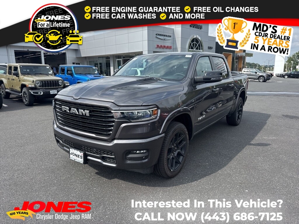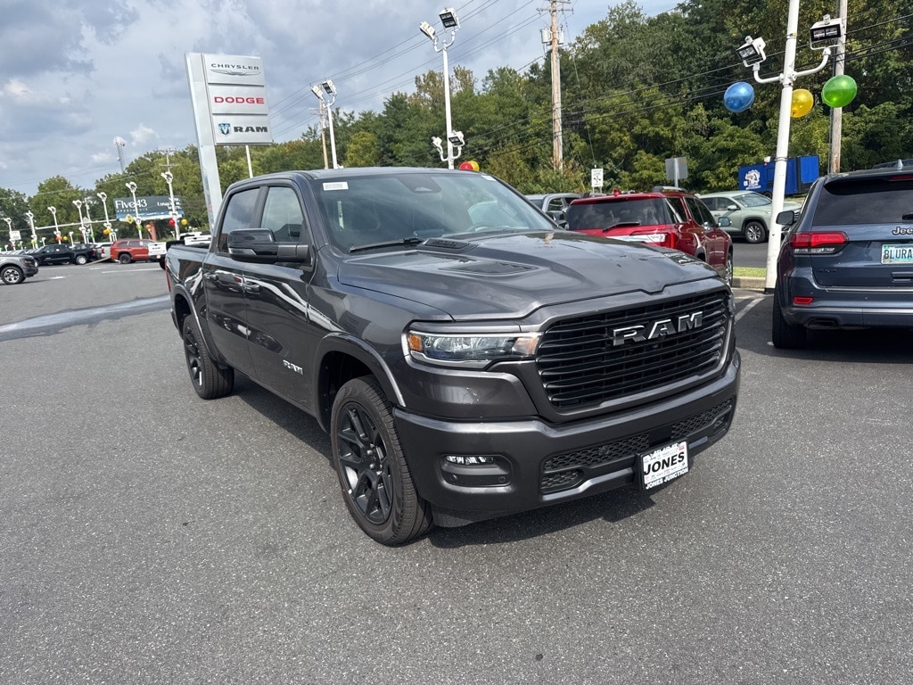 Laramie Level 2 Equipment Group (14.4" Touchscreen Display, 4G LTE Wi-Fi Hot Spot, Apple CarPlay, Cluster 12" TFT Color Display, Connected Travel & Traffic Services, Connectivity - US/Canada, Disassociated Touchscreen Display, Dual Wireless Charging Pad, Front Passenger Interactive Display, Global Telematics Box Module (TBM), Google Android Auto, GPS Antenna Input, GPS Navigation, harman/kardon 19 Speaker Premium Sound, HD Radio, Integrated Center Stack Radio, Integrated Voice Command w/Bluetooth, Power Tailgate, Radio: Uconnect 5 Nav w/14.4" Display, Rain Sensitive Windshield Wipers, Secondary Active Grille Shutters, SiriusXM Radio Service, SiriusXM w/360L, Smartphone As A Key Capable, and USB Host Flip), Quick Order Package 21H Laramie, Sport Appearance Package (Accent Color Premium Power Mirrors, Auto Power-Folding Mirrors, Auto-Dimming Exterior Driver Mirror, Black Interior Accents, Black Painted Exterior Mirrors Caps, Body Color Front Bumper, Body Color Rear Bumper w/Step Pads, Bridgestone Brand Tires, Convex Wide-Angle Exterior Mirror Insert, Exterior Mirrors Courtesy Lamps, Exterior Mirrors w/Heating Element, Exterior Mirrors w/Memory, Exterior Mirrors w/Supplemental Signals, Grille Surround 3 Body Color Tex 2 Black, RAM Grille Badge - Chrome, and Sport Performance Hood), 10 Speakers, 4-Wheel Disc Brakes, ABS brakes, Active Noise Control System, Air Conditioning, Alloy wheels, AM/FM radio: SiriusXM with 360L, Apple CarPlay/Android Auto, Audio memory, Auto High-beam Headlights, Auto-dimming door mirrors, Auto-dimming Rear-View mirror, Automatic temperature control, Brake assist, Bumpers: chrome, Chrome Exterior Mirrors, Compass, Delay-off headlights, Driver door bin, Driver vanity mirror, Dual front impact airbags, Dual front side impact airbags, Electronic Stability Control, Front anti-roll bar, Front Bucket Seats, Front Center Armrest w/Storage, Front dual zone A/C, Front fog lights, Front License Plate Bracket, Front reading lights, Front wheel independent suspension, Fully automatic headlights, Garage door transmitter, Heated door mirrors, Heated front seats, Heated rear seats, Heated steering wheel, Illuminated entry, Leather steering wheel, Leather Trimmed Bucket Seats, Low tire pressure warning, Memory seat, MOPAR Front & Rear Rubber Floor Mats, Navigation System, Occupant sensing airbag, Off-Road Information Pages, Outside temperature display, Overhead airbag, Overhead console, Panic alarm, ParkView Rear Back-Up Camera, Passenger door bin, Passenger vanity mirror, Pirelli Brand Tires, Power door mirrors, Power driver seat, Power passenger seat, Power steering, Power windows, Radio data system, Radio: Uconnect 5 Nav w/12.0" Display, Rear anti-roll bar, Rear reading lights, Rear seat center armrest, Rear step bumper, Remote keyless entry, Security system, Speed control, Split folding rear seat, Steering wheel mounted audio controls, Tachometer, Telescoping steering wheel, Tilt steering wheel, Traction control, Trailer Brake Control, Trip computer, Turn signal indicator mirrors, Variably intermittent wipers, Ventilated front seats, Voltmeter, Wheels: 20" x 9" Premium Paint/Polish, and Wheels: 22" x 9" Forged Aluminum.