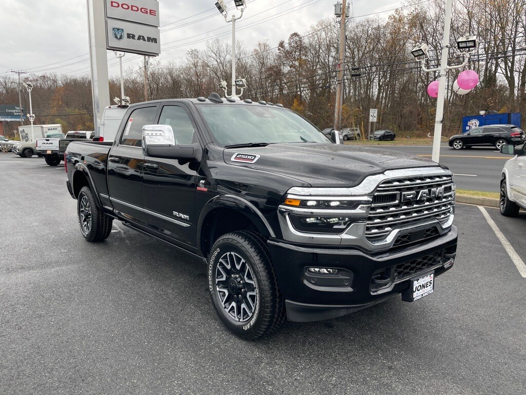 Limited Level 1 Equipment Group (Active Lane Management System, Adaptive Steering System, Anti-Spin Differential Rear Axle, Center Stop Lamp with Cargo View Camera, Digital Rearview Mirror, Drowsy Driver Detection, LED Bed Lighting, MOPAR Spray in Bedliner, Power Deployable Running Boards, Surround View Camera System, Traffic Sign Recognition, Trailer Reverse Guidance, and Trailer Tire Pressure Monitoring System), Quick Order Package 24M Limited, 17 Speakers, 4-Wheel Disc Brakes, 5th Wheel/Gooseneck Towing Prep Group, ABS brakes, Adjustable pedals, Air Conditioning, Alloy wheels, AM/FM radio: SiriusXM with 360L, Apple CarPlay/Android Auto, Audio memory, Auto High-beam Headlights, Auto Level Rear Air Suspension, Auto-dimming door mirrors, Auto-dimming Rear-View mirror, Automatic temperature control, Black Wheel Center Hub, Bodyside moldings, Brake assist, Bumpers: body-color, Clearance Lamps, Compass, Delay-off headlights, Driver door bin, Driver vanity mirror, Dual front impact airbags, Dual front side impact airbags, Electronic Stability Control, Front anti-roll bar, Front Bucket Seats, Front Center Armrest w/Storage, Front dual zone A/C, Front fog lights, Front License Plate Bracket, Front reading lights, Front Seat Back Map Pockets, Fully automatic headlights, Garage door transmitter, Genuine wood console insert, Genuine wood dashboard insert, Genuine wood door panel insert, harman/kardon® Speakers, Heated door mirrors, Heated front seats, Heated rear seats, Heated steering wheel, Illuminated entry, Leather steering wheel, Low tire pressure warning, Memory seat, Navigation System, Occupant sensing airbag, Outside temperature display, Overhead airbag, Overhead console, Panic alarm, ParkView Rear Back-Up Camera, Passenger door bin, Passenger vanity mirror, Pedal memory, Pickup Box, Power door mirrors, Power driver seat, Power passenger seat, Power steering, Power Sunroof, Power windows, Radio data system, Radio: Uconnect 5 Nav with 14.4" Display, Rain sensing wipers, Rear anti-roll bar, Rear reading lights, Rear seat center armrest, Rear step bumper, Rear window defroster, Remote keyless entry, Security system, Speed control, Split folding rear seat, Steering wheel mounted audio controls, Tachometer, Tilt steering wheel, Traction control, Trip computer, Turn signal indicator mirrors, Ultra Premium Leather Seats, Variably intermittent wipers, Vendor Painted Cargo Box, Vendor Painted Cargo Box Tracking, Ventilated Front Seats, Ventilated front seats, Voltmeter, and Wheels: 20" x 8.0" Diamond Cut Aluminum with Black Pt Pockets.
