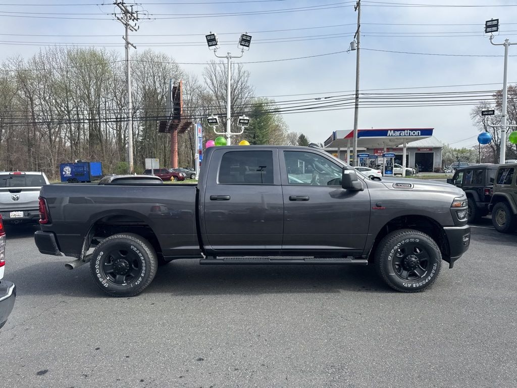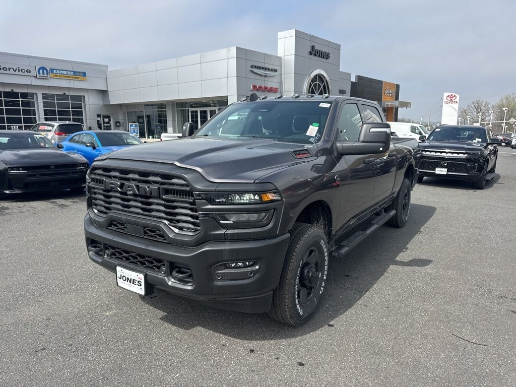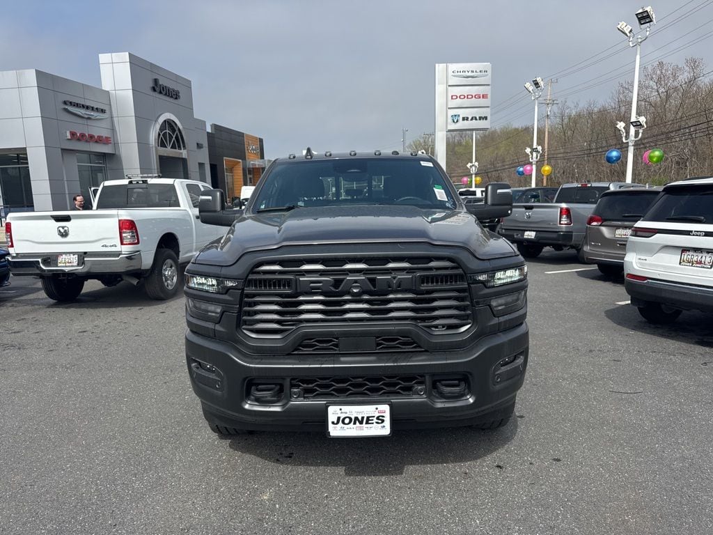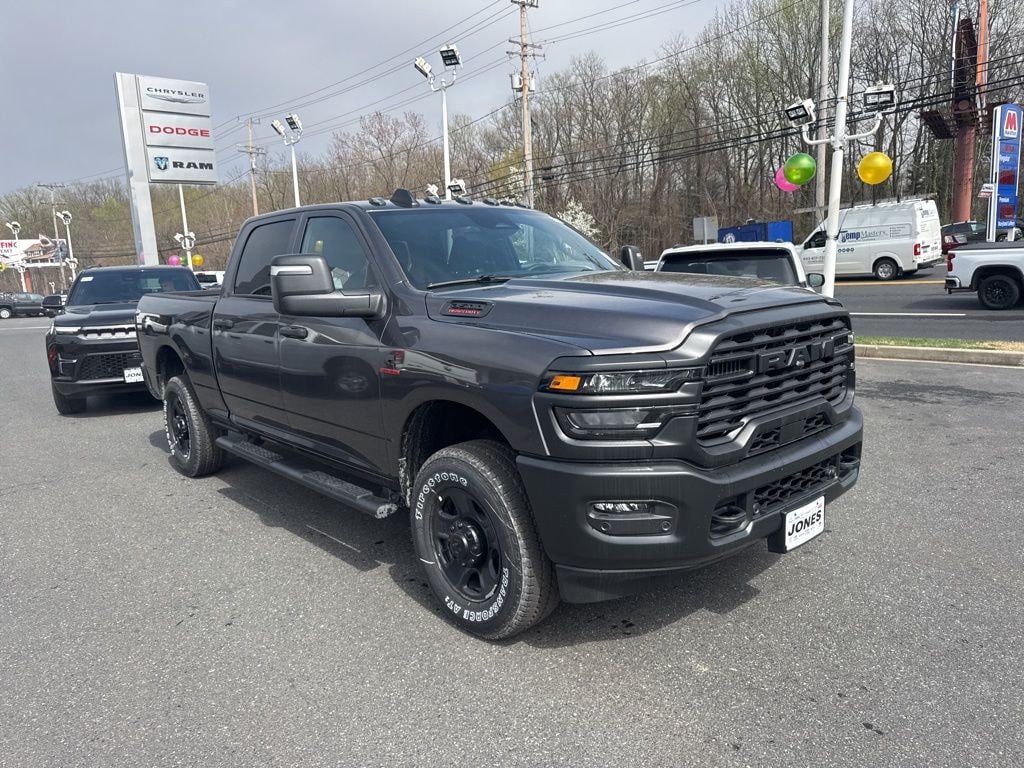 Bed Utility Group (LED Bed Lighting, MOPAR Deployable Bed Step, and MOPAR Spray in Bedliner), Quick Order Package 24A Tradesman, Tradesman Level 1 Equipment Group (115-Volt Auxiliary Front Power Outlet, 12" Touchscreen Display, 2 Way Rear Headrest Seat, 4 Way Front Headrests, 40/20/40 Split Bench Seat, 400W Inverter, 4G LTE Wi-Fi Hot Spot, Air Conditioning ATC with Dual Zone Control, Alexa Built-in, Apple CarPlay, Auto-Dimming Rear-View Mirror, Black Exterior Mirrors, Carpet Floor Covering, Cloth 40/20/40 Bench Seat, Connected Travel and Traffic Services, Connectivity - US/Canada, Convenience Group, Disassociated Touchscreen Display, Emergency Vehicle Alert System (EVAS), Exterior 115V AC Outlet, Exterior Mirrors Courtesy Lamps, Exterior Mirrors with Heating Element, Exterior Mirrors with Supplemental Signals, For Details Visit DriveUconnect.com, For More Info, Call 800-643-2112, Front and Rear Floor Mats, Front Armrest with Cupholders, Global Telematics Box Module, Google Android Auto, GPS Antenna Input, GPS Navigation, HD Radio, Integrated Voice Command with Bluetooth, Manual Adjust 4-Way Driver Seat, Manual Adjust 4-Way Front Passenger Seat, Manual Folding Exterior Mirrors, Manual Telescoping Mirrors, Mirror Running Lights, Mopar Black Tubular Side Steps, Off-Road Information Pages, ParkSense Front/Rear Park Assist System, Power Adjust Mirrors, Power Heat Fold Telescopic Mirrors, Power-Adjustable Convex Aux Mirrors, Radio: Uconnect 5 Navigation with 12.0" Display, Rear Folding Seat, Rear Power Sliding Window, Remote USB Port - Charge Only, Selectable Tire Fill Alert, SiriusXM Radio Service, SiriusXM with 360L, Storage Tray, Tinted Acoustic Windshield Glass, and Trailer Tow Pages), 4-Wheel Disc Brakes, 5th Wheel/Gooseneck Towing Prep Group, 6 Speakers, ABS brakes, Air Conditioning, AM/FM radio: SiriusXM, Apple CarPlay/Android Auto, Brake assist, Clearance Lamps, Compass, Delay-off headlights, Driver door bin, Dual front impact airbags, Dual front side impact airbags, Electronic Stability Control, Front anti-roll bar, Front Center Armrest w/Storage, Front fog lights, Front License Plate Bracket, Front reading lights, Fully automatic headlights, Illuminated entry, Low tire pressure warning, MyFlexCare Service Diesel, Occupant sensing airbag, Outside temperature display, Overhead airbag, Overhead console, Panic alarm, ParkView Rear Back-Up Camera, Passenger door bin, Passenger vanity mirror, Power steering, Power windows, Radio data system, Radio: Uconnect 5 with 8.4" Display, Rear step bumper, Rear window defroster, Remote keyless entry, Speed control, Tachometer, Tilt steering wheel, Traction control, Variably intermittent wipers, Voltmeter, and Wheels: 18" x 8.0" Black Painted SteeL.