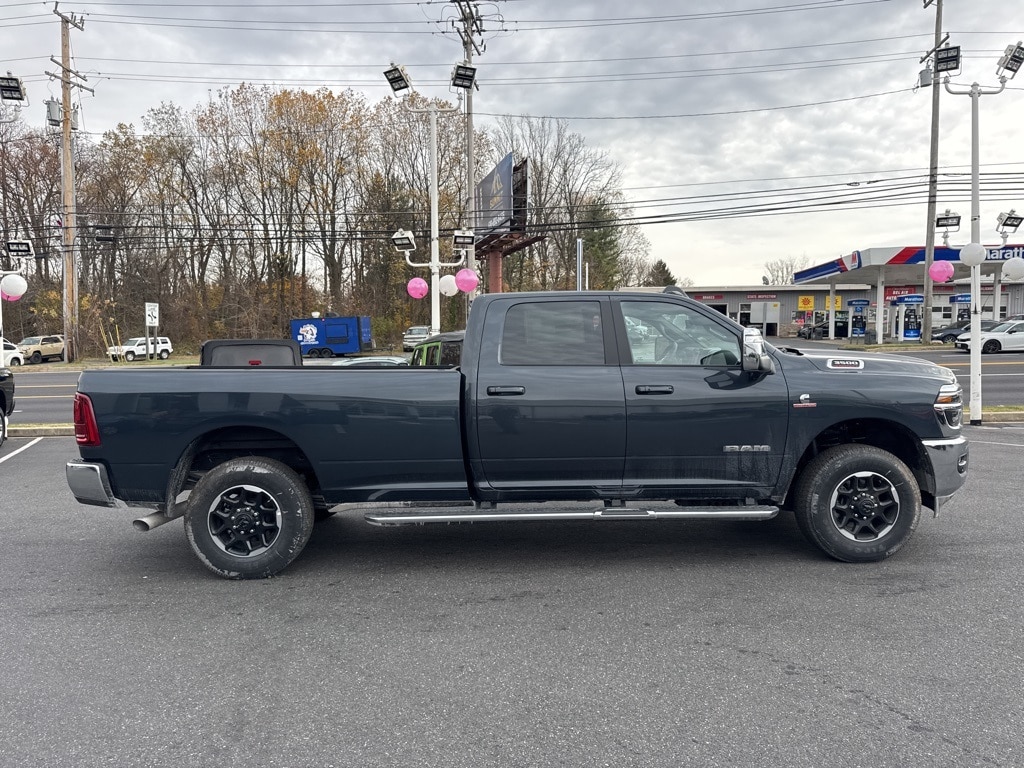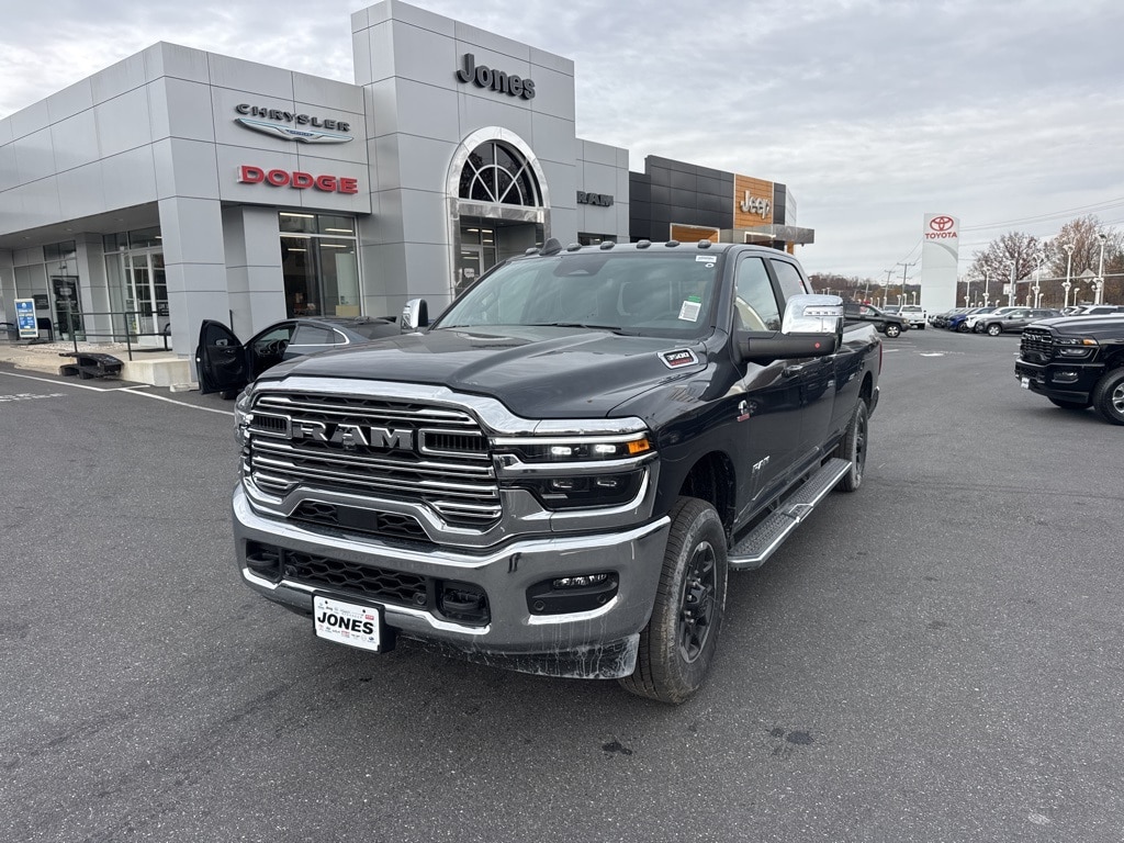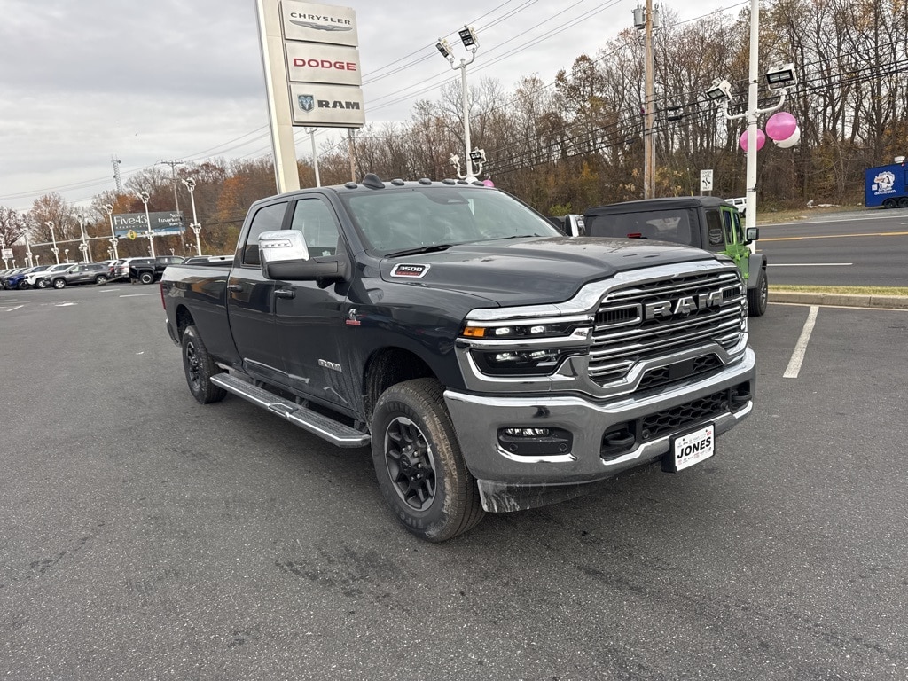 Chrome Bumper Package (Bright Front Bumper and Bright Rear Bumper), Laramie Level 1 Plus Equipment Group (#1 Seat Foam Cushion, 115V Auxiliary Rear Power Outlet, 2 Way Rear Headrest Seat, 2nd Row In Floor Storage Bins, 4 Way Front Headrests, Active Lane Management System, Adaptive Steering System, Auto Adjust In Reverse Exterior Mirrors, Auto Dimming Exterior Passenger Mirror, Auto High Beam Headlamp Control, Auto Power-Folding Mirrors, Auto-Dimming Exterior Mirrors, Bucket Seats, Chrome Exterior Mirrors, CTR Stop Lamp w/Cargo View Camera, Drowsy Driver Detection, Dual Wireless Charging Pad, Exterior Mirrors Courtesy Lamps, Exterior Mirrors w/Heating Element, Exterior Mirrors w/Memory, Exterior Mirrors w/Supplemental Signals, Foam Bottle Insert (Door Trim Panel), Folding Flat Load Floor Storage, Forward & Reverse Utility Lights, Front Seat Back Map Pockets, Full Length Upgraded Floor Console, Heated Front Seats, Heated Steering Wheel, High Back Seats, Leather Trimmed Bucket Seats, LED Bed Lighting, Mirror Running Lights, MOPAR Deployable Bed Step, MOPAR Spray In Bedliner, Power 2-Way Driver Lumbar Adjust, Power 2-Way Passenger Lumbar Adjust, Power Adjust 8-Way Driver Seat, Power Adjust 8-Way Front Passenger Seat, Power Adjust Mirrors, Power Adjustable Pedals w/Memory, Power Heat Fold Memory Telescopic Mirrors, Power Telescoping Mirrors, Power-Adjustable Convex Aux Mirrors, Rain Sensitive Windshield Wipers, Rear 60/40 Folding Seat, Remote Tailgate Release, and Traffic Sign Recognition), Quick Order Package 24H Laramie, Tow Technology Plus Group (Digital 3.0 Rear View Auto Dimming Mirror and Trailer Reverse Steering Control), Towing Technology Group (Surround View Camera System, Trailer Reverse Guidance, and Trailer Tire Pressure Monitoring System), 10 Speakers, 4-Wheel Disc Brakes, 4G LTE Wi-Fi Hot Spot, 50 Gallon Fuel Tank, 5th Wheel/Gooseneck Towing Prep Group, ABS brakes, Air Conditioning, Alexa Built-In, Alloy wheels, AM/FM radio: SiriusXM with 360L, Apple CarPlay, Apple CarPlay/Android Auto, Auto Level Rear Air Suspension, Auto-dimming Rear-View mirror, Automatic temperature control, Black Wheel Center Hub, Brake assist, Bumpers: body-color, Chrome Flat Wheel-to-Wheel Side Steps, Clearance Lamps, Compass, Connected Travel & Traffic Services, Connectivity - US/Canada, Delay-off headlights, Disassociated Touchscreen Display, Driver door bin, Driver vanity mirror, Dual front impact airbags, Dual front side impact airbags, Electronic Stability Control, Emergency Vehicle Alert System (EVAS), Front anti-roll bar, Front Center Armrest w/Storage, Front dual zone A/C, Front fog lights, Front License Plate Bracket, Front reading lights, Fully automatic headlights, Garage door transmitter, Global Telematics Box Module (TBM), Google Android Auto, GPS Antenna Input, GPS Navigation, HD Radio, Heated door mirrors, Heated front seats, Heated steering wheel, Illuminated entry, Integrated Voice Command w/Bluetooth, Leather Trim 40/20/40 Bench Seat, Low tire pressure warning, MOPAR Front & Rear Rubber Floor Mats, Navigation System, Occupant sensing airbag, Off-Road Information Pages, Outside temperature display, Overhead airbag, Overhead console, Panic alarm, ParkView Rear Back-Up Camera, Passenger door bin, Passenger vanity mirror, Power door mirrors, Power driver seat, Power passenger seat, Power steering, Power Sunroof, Power windows, Radio data system, Radio: Uconnect 5 Nav w/12.0" Display, Rear reading lights, Rear seat center armrest, Rear step bumper, Rear window defroster, Remote keyless entry, Security system, Selectable Tire Fill Alert, SiriusXM Radio Service, SiriusXM w/360L, Speed control, Split folding rear seat, Steering wheel mounted audio controls, Tachometer, Tilt steering wheel, Traction control, Trailer Tow Pages, Trip computer, Turn signal indicator mirrors, Variably intermittent wipers, Voltmeter, and Whe