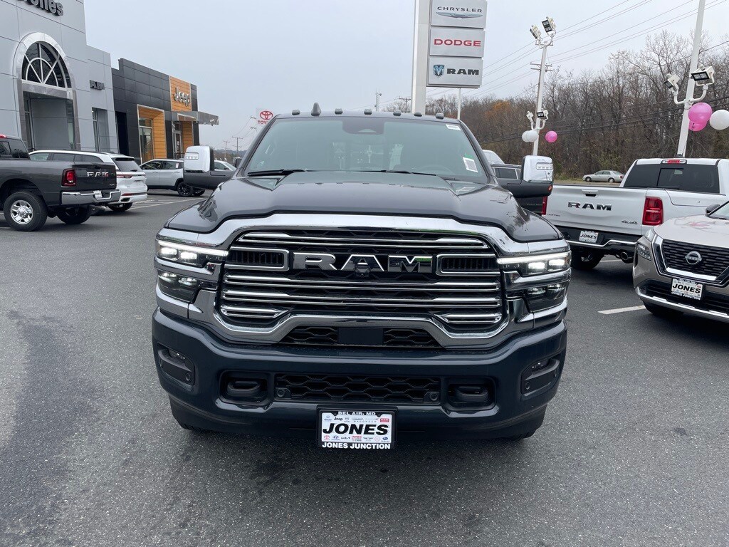 Bed Utility Group (LED Bed Lighting, MOPAR Deployable Bed Step, and MOPAR Spray in Bedliner), Laramie Level 2 Equipment Group (#1 Seat Foam Cushion, 115V Auxiliary Rear Power Outlet, 14.4" Touchscreen Display, 17 Speaker Harman/Kardon Premium Sound, 2 Way Rear Headrest Seat, 2nd Row in Floor Storage Bins, 4 Way Front Headrests, 4G LTE Wi-Fi Hot Spot, Alexa Built-in, Apple CarPlay, Auto Adjust in Reverse Exterior Mirrors, Auto Dimming Exterior Passenger Mirror, Auto High Beam Headlamp Control, Auto Power-Folding Mirrors, Auto-Dimming Exterior Mirrors, Bucket Seats, Chrome Exterior Mirrors, Connected Travel and Traffic Services, Connectivity - US/Canada, Disassociated Touchscreen Display, Dual Wireless Charging Pad, Emergency Vehicle Alert System (EVAS), Exterior Mirrors Courtesy Lamps, Exterior Mirrors with Heating Element, Exterior Mirrors with Memory, Exterior Mirrors with Supplemental Signals, Foam Bottle Insert (door Trim Panel), Folding Flat Load Floor Storage, For Details Visit DriveUconnect.com, For More Info, Call 800-643-2112, Forward and Reverse Utility Lights, Front Seat Back Map Pockets, Full Length Upgraded Floor Console, Global Telematics Box Module, Google Android Auto, GPS Antenna Input, GPS Navigation, HD Radio, Heated Front Seats, Heated Steering Wheel, High Back Seats, Integrated Voice Command with Bluetooth, Leather Trimmed Bucket Seats, Mirror Running Lights, Off-Road Information Pages, Power 2-Way Driver Lumbar Adjust, Power 2-Way Passenger Lumbar Adjust, Power Adjust 8-Way Driver Seat, Power Adjust 8-Way Front Passenger Seat, Power Adjust Mirrors, Power Adjustable Pedals with Memory, Power Heat Fold Memory Telescopic Mirrors, Power Telescoping Mirrors, Power-Adjustable Convex Aux Mirrors, Radio: Uconnect 5 Nav with 14.4" Display, Rain Sensitive Windshield Wipers, Rear 60/40 Folding Seat, Remote Tailgate Release, Selectable Tire Fill Alert, SiriusXM Radio Service, SiriusXM with 360L, and Trailer Tow Pages), Max Tow Package (5th Wheel/Gooseneck Towing Prep Group and Auto Level Rear Air Suspension), Quick Order Package 24H Laramie, Towing Technology Group (Center Stop Lamp with Cargo View Camera, Surround View Camera System, Trailer Reverse Guidance, and Trailer Tire Pressure Monitoring System), 10 Speakers, 4-Wheel Disc Brakes, 50 Gallon Fuel Tank, 6000# Front Axle with Hub Extension, ABS brakes, Air Conditioning, Alloy wheels, AM/FM radio: SiriusXM with 360L, Apple CarPlay/Android Auto, Auto-dimming Rear-View mirror, Automatic temperature control, Black Wheel Center Hub, Box and Rear Fender Clearance Lamps, Brake assist, Bumpers: body-color, Center Hub, Clearance Lamps, Compass, Dash Pass Thru Wire Circuits, Delay-off headlights, Driver door bin, Driver vanity mirror, Dual front impact airbags, Dual front side impact airbags, Dual Rear Wheels, Electronic Stability Control, Engine Block Heater, Front anti-roll bar, Front Center Armrest w/Storage, Front dual zone A/C, Front fog lights, Front License Plate Bracket, Front reading lights, Fully automatic headlights, Garage door transmitter, Heated door mirrors, Heated front seats, Heated steering wheel, Illuminated entry, Instrument Panel Mounted Auxiliary Switches, Leather Trim 40/20/40 Bench Seat, Low tire pressure warning, MOPAR Front and Rear Rubber Floor Mats, Navigation System, Nexen Brand Tires, Occupant sensing airbag, Outside temperature display, Overhead airbag, Overhead console, Panic alarm, ParkView Rear Back-Up Camera, Passenger door bin, Passenger vanity mirror, Power Deployable Running Boards, Power door mirrors, Power driver seat, Power passenger seat, Power steering, Power windows, Radio data system, Radio: Uconnect 5 Navigation with 12.0" Display, Rear reading lights, Rear seat center armrest, Rear step bumper, Rear window defroster, Remote keyless entry, Security system, Speed control, Split folding rear seat, Steering wheel m