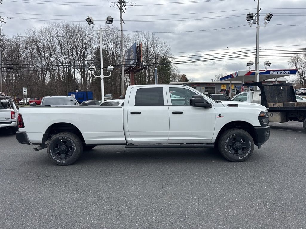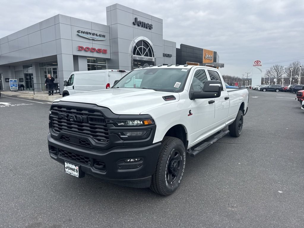 Bed Convenience Group (LED Bed Lighting and MOPAR Spray in Bedliner), Quick Order Package 24A Tradesman, Tradesman Level 1 Equipment Group (115-Volt Auxiliary Front Power Outlet, 12" Touchscreen Display, 2 Way Rear Headrest Seat, 4 Way Front Headrests, 40/20/40 Split Bench Seat, 400W Inverter, 4G LTE Wi-Fi Hot Spot, Air Conditioning ATC with Dual Zone Control, Alexa Built-in, Apple CarPlay, Auto-Dimming Rear-View Mirror, Black Exterior Mirrors, Carpet Floor Covering, Cloth 40/20/40 Bench Seat, Connected Travel and Traffic Services, Connectivity - US/Canada, Convenience Group, Disassociated Touchscreen Display, Emergency Vehicle Alert System (EVAS), Exterior 115V AC Outlet, Exterior Mirrors Courtesy Lamps, Exterior Mirrors with Heating Element, Exterior Mirrors with Supplemental Signals, For Details Visit DriveUconnect.com, For More Info, Call 800-643-2112, Front and Rear Floor Mats, Front Armrest with Cupholders, Global Telematics Box Module, Google Android Auto, GPS Antenna Input, GPS Navigation, HD Radio, Integrated Voice Command with Bluetooth, Manual Adjust 4-Way Driver Seat, Manual Adjust 4-Way Front Passenger Seat, Manual Folding Exterior Mirrors, Manual Telescoping Mirrors, Mirror Running Lights, Mopar Black Tubular Side Steps, Off-Road Information Pages, ParkSense Front/Rear Park Assist System, Power Adjust Mirrors, Power Heat Fold Telescopic Mirrors, Power-Adjustable Convex Aux Mirrors, Radio: Uconnect 5 Navigation with 12.0" Display, Rear Folding Seat, Rear Power Sliding Window, Remote USB Port - Charge Only, Selectable Tire Fill Alert, SiriusXM Radio Service, SiriusXM with 360L, Storage Tray, Tinted Acoustic Windshield Glass, and Trailer Tow Pages), 4-Wheel Disc Brakes, 50 Gallon Fuel Tank, 5th Wheel/Gooseneck Towing Prep Group, 6 Speakers, ABS brakes, Air Conditioning, AM/FM radio: SiriusXM, Apple CarPlay/Android Auto, Black Wheel Center Hub, Brake assist, Clearance Lamps, Compass, Dash Pass Thru Wire Circuits, Delay-off headlights, Driver door bin, Dual front impact airbags, Dual front side impact airbags, Electronic Stability Control, Front anti-roll bar, Front Center Armrest w/Storage, Front fog lights, Front License Plate Bracket, Front reading lights, Fully automatic headlights, Illuminated entry, Instrument Panel Mounted Auxiliary Switches, Low tire pressure warning, MOPAR Front and Rear Rubber Floor Mats, MyFlexCare Service Diesel, Occupant sensing airbag, Outside temperature display, Overhead airbag, Overhead console, Panic alarm, ParkView Rear Back-Up Camera, Passenger door bin, Passenger vanity mirror, Power steering, Power windows, Radio data system, Radio: Uconnect 5 with 8.4" Display, Rear step bumper, Rear Wheelhouse Liners, Rear window defroster, Remote keyless entry, Speed control, Tachometer, Tilt steering wheel, Traction control, Variably intermittent wipers, Voltmeter, and Wheels: 18" x 8.0" Black Painted SteeL.